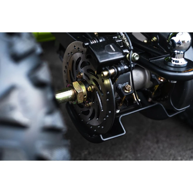 Benzínová čtyřkolka Leramotors By APOLLO RFZ 250 je konstruována tak, aby odolala i náročným podmínkám. Její robustní odpružení zahrnuje centrální tlumič vzadu, který zajišťuje stabilní jízdu i v hrbolatém terénu, zatímco hydraulické kotoučové brzdy na všech kolech poskytují spolehlivý brzdný účinek. Maximální rychlost čtyřkolky je až 60 km/h, což je ideální pro dobrodružnou jízdu, a palivová nádrž s kapacitou 6 litrů umožňuje dlouhé trasy bez častého doplňování.
