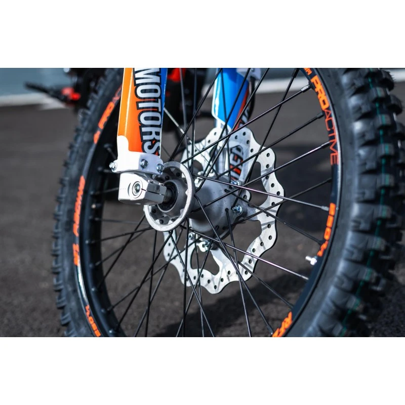 Pitbike Leramotors By Apollo THUNDER 250cc 21/18 je vybaven masivním odpružením, které je navrženo pro maximální komfort a výkon i v nejnáročnějším terénu. Přední olejové tlumiče poskytují hladký průjezd nerovnostmi a zajišťují stabilitu při vyšších rychlostech. Centrální zadní odpružení s nastavitelnou tuhostí umožňuje přizpůsobit motorku individuálním preferencím jezdce, což zaručuje plynulou jízdu bez ohledu na obtížnost terénu. Toto robustní odpružení umožňuje bezpečně zvládat skoky, výmoly a další překážky, čímž posouvá off-road zážitek na vyšší úroveň.