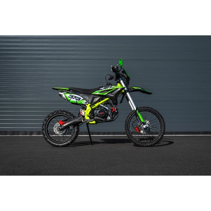 Pitbike je vybaven hydraulickými kotoučovými brzdami na obou kolech, což zajišťuje vynikající brzdný výkon i při vyšších rychlostech. Přední kolo o velikosti 19" a zadní 16" poskytují výbornou ovladatelnost a stabilitu a zároveň vynikající trakci. Manuální čtyřrychlostní převodovka, elektrické CDI zapalování a možnost jak nožního, tak elektrického startování dávají jezdci absolutní kontrolu nad strojem za všech podmínek.