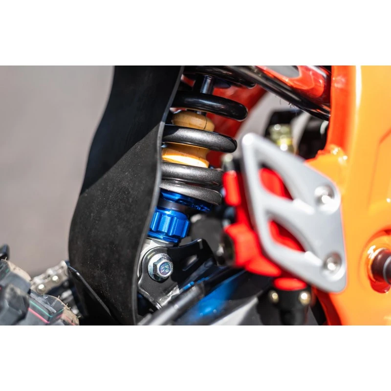 Kryt motoru, který chrání výkonný motor o síle 11,7 kW (16 HP) Je dalším prvkem, který přispívá k odolnosti a spolehlivosti tohoto stroje. Tento kvalitní kryt nejen chrání motor před nečistotami, kameny a jinými překážkami během jízdy v terénu, ale také zajišťuje lepší chlazení a delší životnost motoru. S výkonem 16 HP poskytuje motorka dostatečnou sílu pro náročné terénní podmínky i svižné zrychlení, zatímco ochranný kryt udržuje motor v bezpečí i při extrémních výkonech.