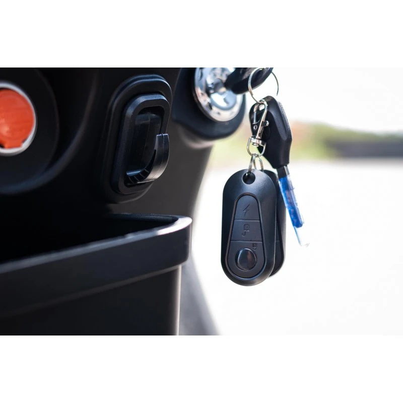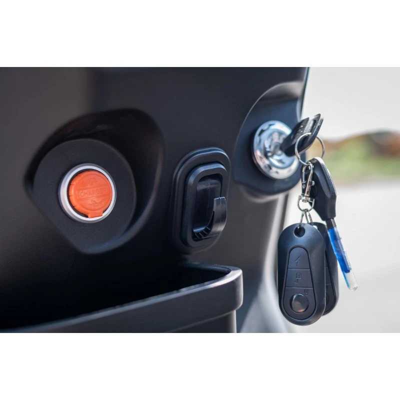 Elektro skútr od LERAMOTORS nabízí vysokou úroveň bezpečnosti a pohodlí. Instalovaný alarm zajistí, že váš skútr bude v bezpečí, i když jej necháte zaparkovaný kdekoliv ve městě. S dálkovým ovládáním můžete snadno zabezpečit a odemknout skútr jediným stiskem tlačítka, což šetří čas a zvyšuje komfort. A se zpátečkou bude manévrování na úzkých místech hračkou – už žádné složité otáčení! Ideální elektrický skútr pro seniory? Nejen pro seniory, tyto vlastnosti elektrického skútru zvyšují nejen komfort, ale i bezpečnost vaší jízdy, a umožní vám naplno si užít každý okamžik na cestách.