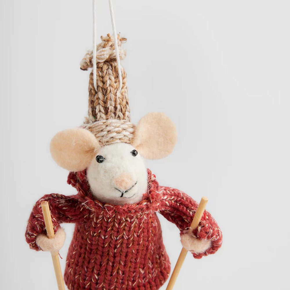 HOME & YOU Dekorace k zavěšení myš na lyžích 13 cm