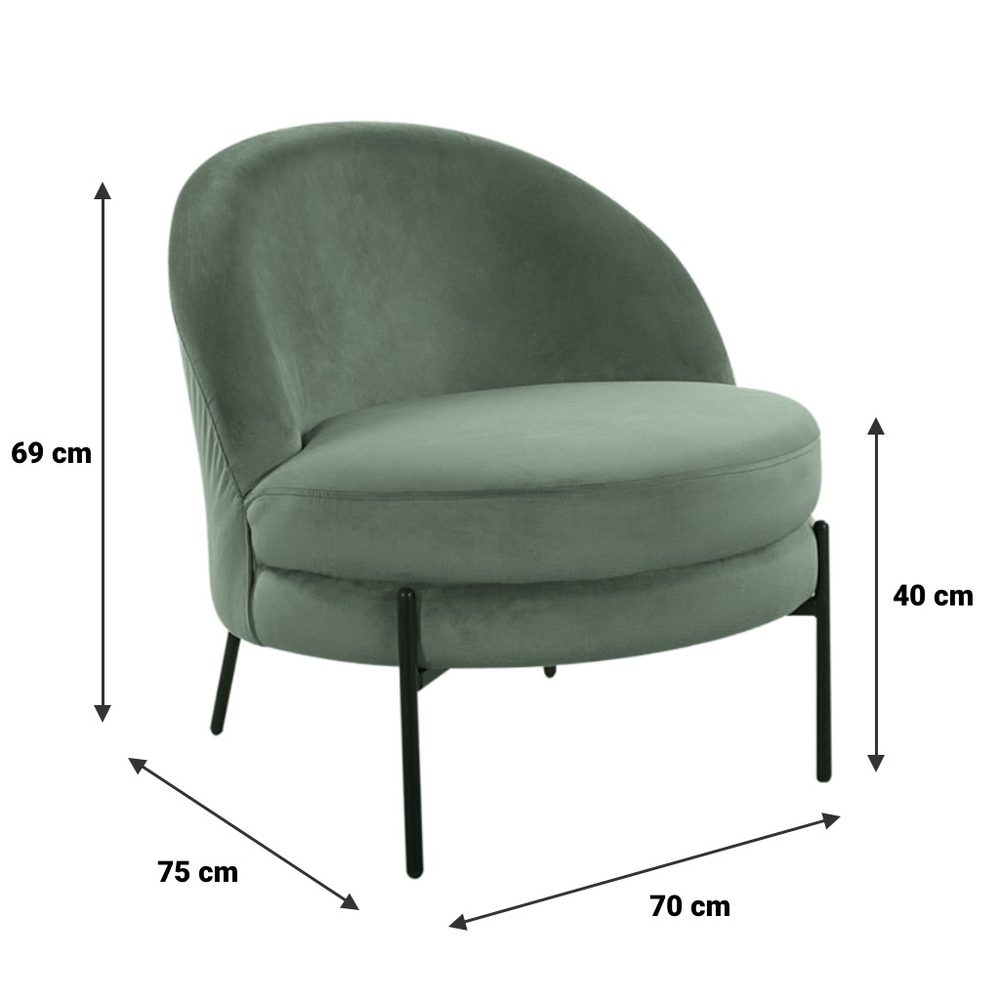 Rozměry: D 75 x Š 70 x V 69 cm, V sedáku 40 cm Materiál: samet, kov Krásné a stylové křeslo se stane skutečnou ozdobou Vašeho pokoje! Vytvořte si v ložnici svůj oblíbený útulný koutek, v obývacím pokoji příjemné místo na čtení nebo ten nejpohodlnější prostor pro sledování televize.