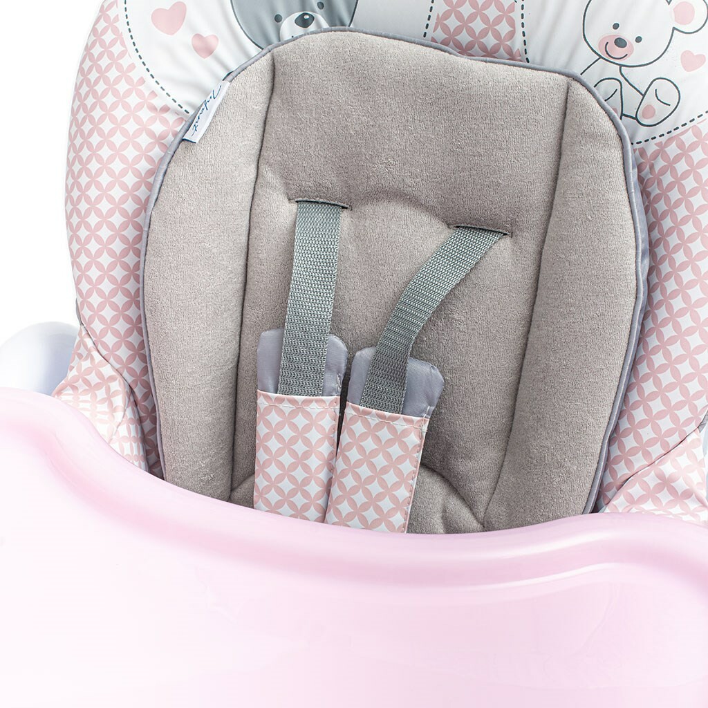 Jídelní židlička je určená pro děti, které už samy sedí, ve věku od 6 do 36 měsíců a do 15 kg. Kolečka s brzdou zajistí snadné přemísťování a zároveň stabilitu. Kvalitní potah lze snadno čistit. Dvojitý pultík lze sundat, pod sedadlem se nachází koš na drobnosti. Výšku židličky lze nastavit do 7 úrovní, bezpečnost zvyšují 5-bodové bezpečnostní pásy. Opěrku zad a nohou můžete nastavit do 3 poloh, podnožku na nohy do 2 poloh. Součástí je novorozenecká vložka. Židlička má pevnou stabilní konstrukci.Rozměry: sedadlo: 24 x 32 cm výška opěrky zad: 47 cm koš: 34 x 25 cm pultík: 51 x 23 cm opěrka noh: 33 x 19 cm podnožka na nohy: 23 x 8 cm průměr koleček: 4,5 cm