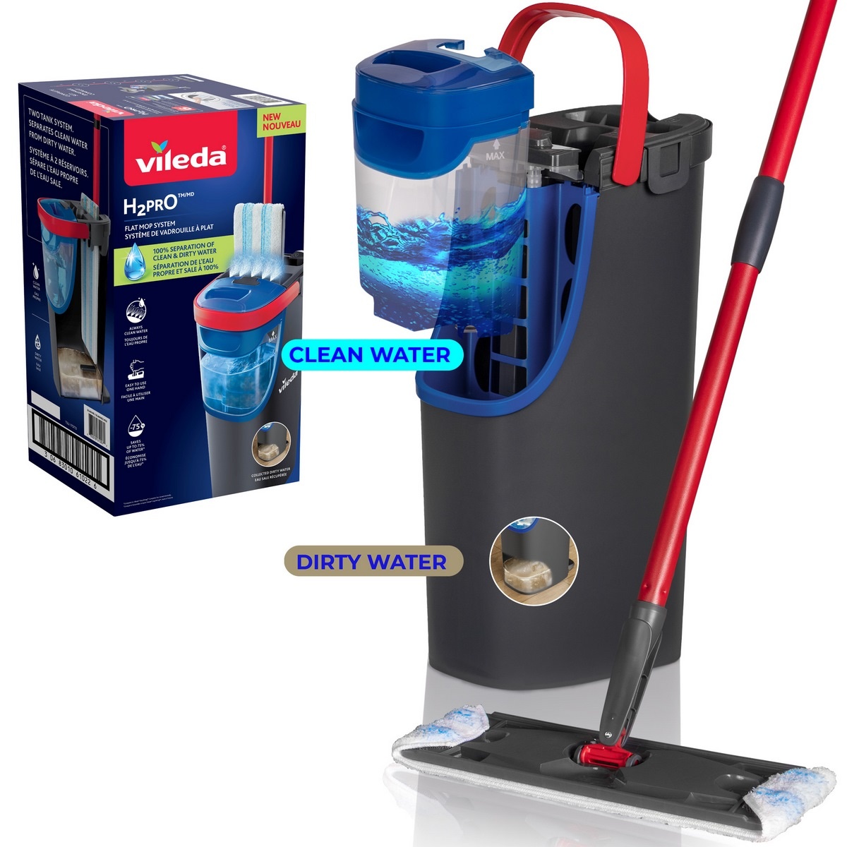 H2Pro plochý mop od značky Vileda přináší moderní způsob úklidu s důrazem na hygienu, úsporu vody a maximální komfort. Je vybaven inovativním systémem oddělení čisté a špinavé vody, díky kterému vytíráte vždy jen čistou vodou. Nádrž s vodou je průhledná, odnímatelná a snadno se plní i přenáší. Tento promyšlený systém zaručuje, že mop zůstává stále čistý a efektivní, a zároveň šetří až 75 % vody oproti běžným mopům.Speciální mikrovláknová náhrada zajistí důkladné odstranění i odolných nečistot bez zanechání šmouh. Mop je vhodný pro všechny typy tvrdých podlah včetně parket, dlažby i laminátu. Náhradu lze jednoduše sejmout a vyprat v pračce, čímž se prodlužuje její životnost a zachovává vysoká účinnost. Díky rovnoměrnému zvlhčování a preciznímu ždímacímu systému se mop nikdy nenamáčí do špinavé vody, což zaručuje hygienické čištění s minimální námahou.Praktický kompaktní kbelík s integrovaným ždímacím systémem zabere minimum místa a snadno se skladuje i v menších domácnostech. Automatický ždímací mechanismus s pružinou usnadňuje práci a umožňuje vytírání bez ohýbání či namáčení rukou. Mop je vybaven čtyřdílnou rukojetí o délce 130 cma 360° kloubem, který umožňuje snadné manévrování pod nábytkem i v rozích místností.Hlavní výhody produktu oddělený systém čisté a špinavé vody pro hygienické vytírání úspora až 75 % vody díky efektivnímu systému H2Pro mikrovláknová podložka pro čištění bez šmouh rovnoměrné zvlhčení a snadné ždímání bez námahy kompaktní design vhodný pro malé prostory teleskopická rukojeť 130 cm a 360° kloub pro snadné manévrování náhradu lze prát v pračceObsah balení 1× kbelík se separačním systémem H2Pro 1× plochý mop s rukojetí a mikrovláknovou podložkou