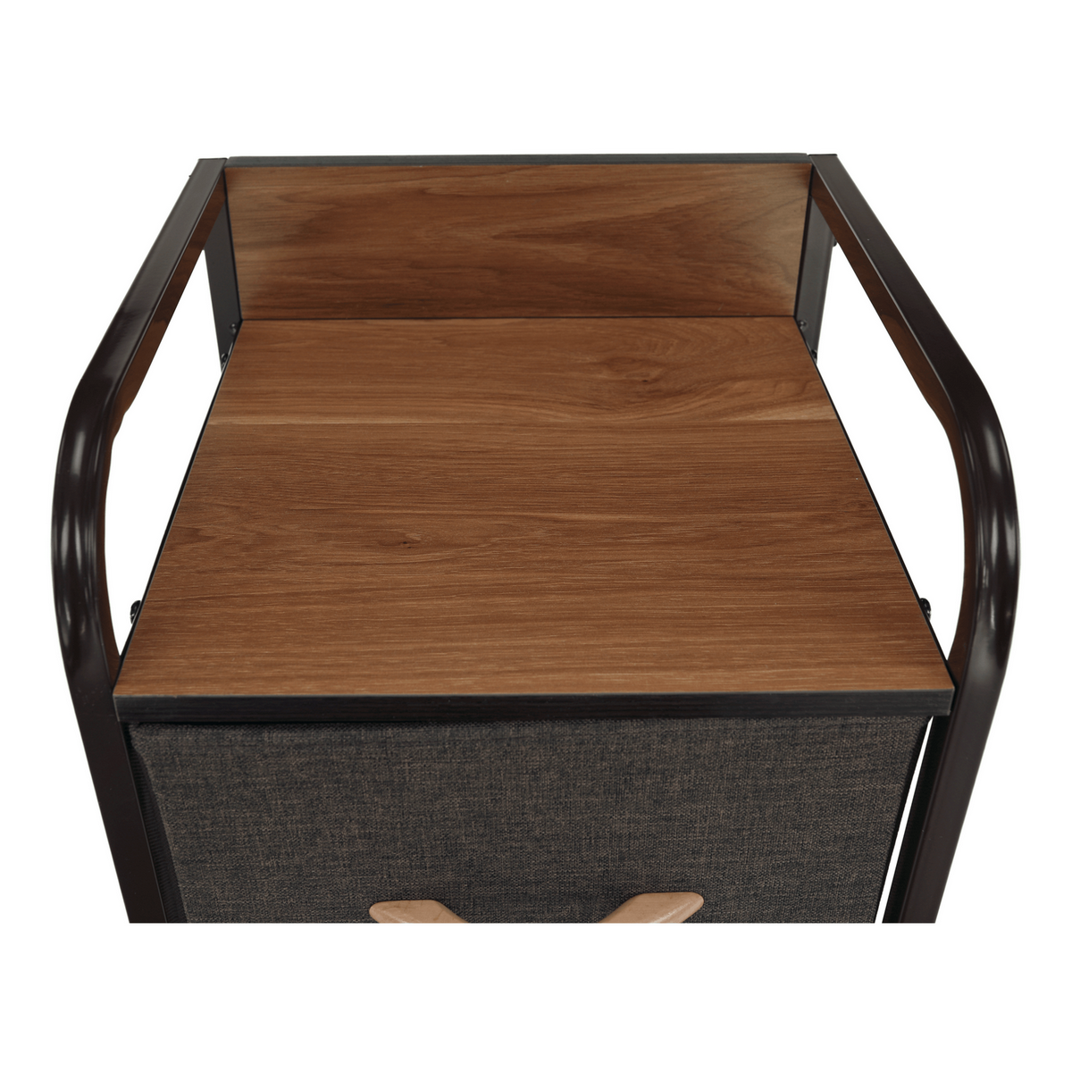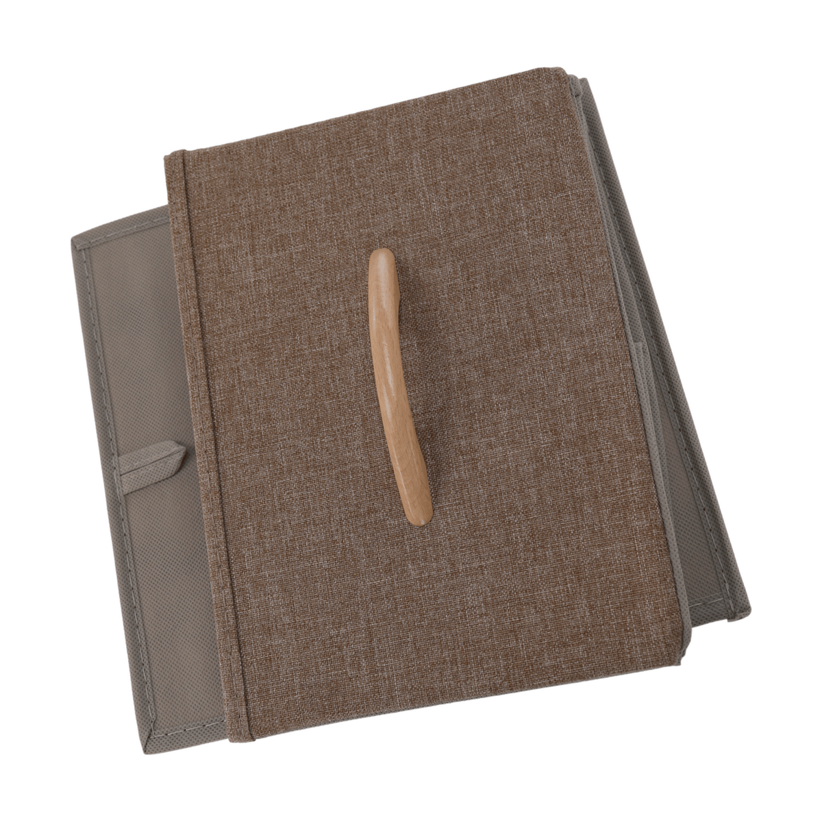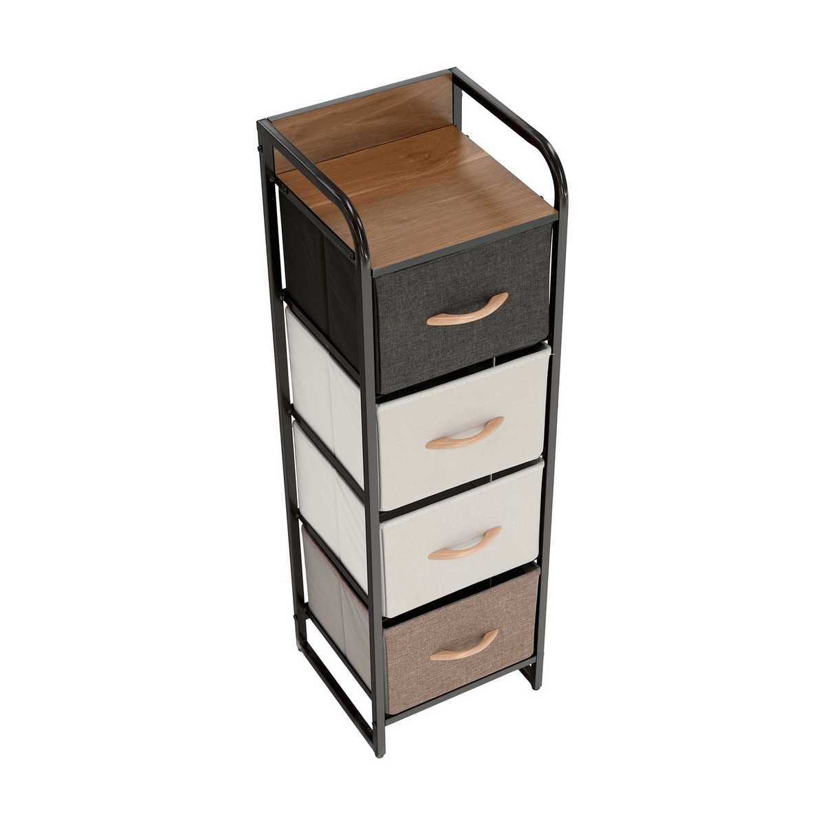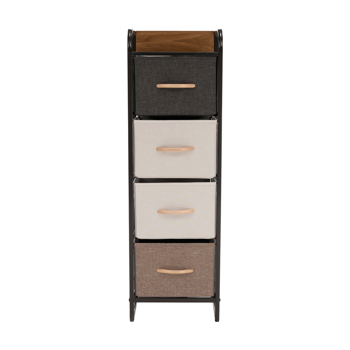 Komoda s látkovými šuplíky HAZEL TYP 1 v hnědém provedení je praktické a lehké úložné řešení vhodné do obývacího pokoje, ložnice i dětského koutku. Stabilní kovová konstrukce doplněná o dřevěné prvky a čtyři textilní zásuvky v příjemných odstínech béžové, světle hnědé a tmavě hnědé vytváří moderní a zároveň útulný vzhled. Díky kompaktním rozměrům se skvěle hodí i do menších prostor, kde poskytne přehledné uložení oblečení, doplňků či drobností. Komoda stojí na nožičkách, snadno se přesouvá a její montáž je velmi jednoduchá.Parametry: počet zásuvek: 4 materiál: kov / látka / dřevo barva: hnědá (béžová, světle hnědá, tmavě hnědá) rozměry: 31 × 31,7 × 99 cm dodáváno v demontu