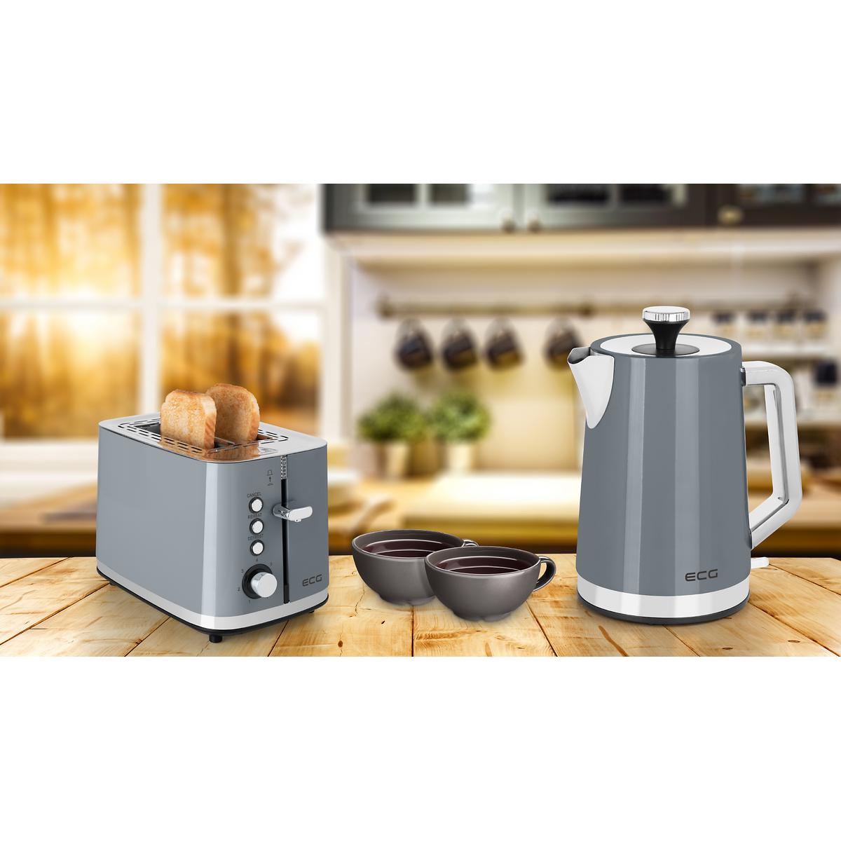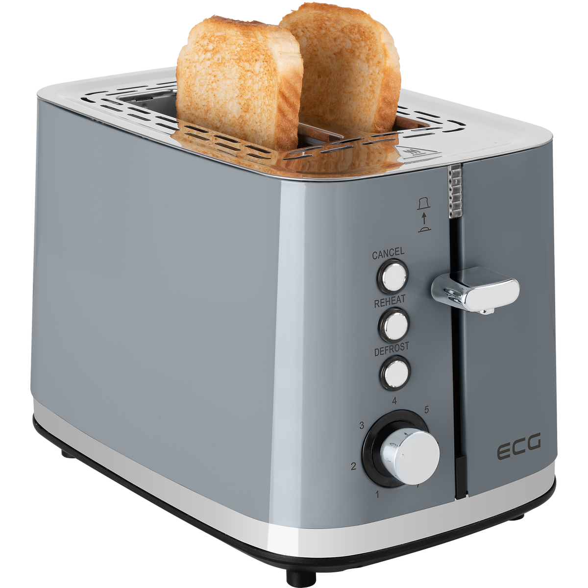 Vyznáváte zásadu, že základem úspěšného dne je vydatná snídaně? Pokud ano, ECG ST 2766 Vintage Scuro je kuchyňským pomocníkem přesně pro vás. Jeho prostřednictvím totiž můžete každé ráno připravovat pro sebe i své blízké neodolatelně křupavé topinky. Ať už je máte radši naslano, nebo nasladko, pořízením tohoto topinkovače rozhodně nešlápnete vedle. Získáte totiž nejen pomůcku pro přípravu skvělých pochoutek, ale i vkusnou ozdobu kuchyně – tento malý spotřebič jsme opatřili šedou povrchovou úpravou z kvalitního nerezu a jeho atraktivní vzhled jsme ještě podtrhli stylovými nerezovými prvky.Topinkovač disponuje dvěma přihrádkami, které jsou dostatečně široké na to, abyste v nich mohli chystat tenčí i silnější toasty. Jeho údržba je hračkou zásluhou odnímatelné zásuvky na drobky.Pomocí designového topinkovače ECG si můžete dennodenně připravovat snídaně, svačinky či večeře přesně podle svých představ. Míru opečení si snadno nastavíte prostřednictvím 7 stupňů intenzity ohřevu. Rozpékání pečiva je možné díky speciální integrované mřížce. A aby toho nebylo málo, topinkovač nabízí i praktické funkce rozmrazování a přihřívání. O rovnoměrné opékání se přitom v každém případě postará technologie automatického centrování.Jakmile je vaše pečivo připraveno, topinkovač jej automaticky vysune a sám se vypne.Používání topinkovače ECG ST 2766 Vintage Scuro je za všech okolností bezpečné. Abyste se o něj zbytečně nepopálili, opatřili jsme jej tepelně izolovanými stěnami, a aby při provozu držel stabilitu, vybavili jsme ho i protiskluzovými nožičkami.Přívodní kabel našeho topinkovače měří dostatečných 77 cm, přičemž je zde připraven i speciální prostor pro jeho uskladnění.