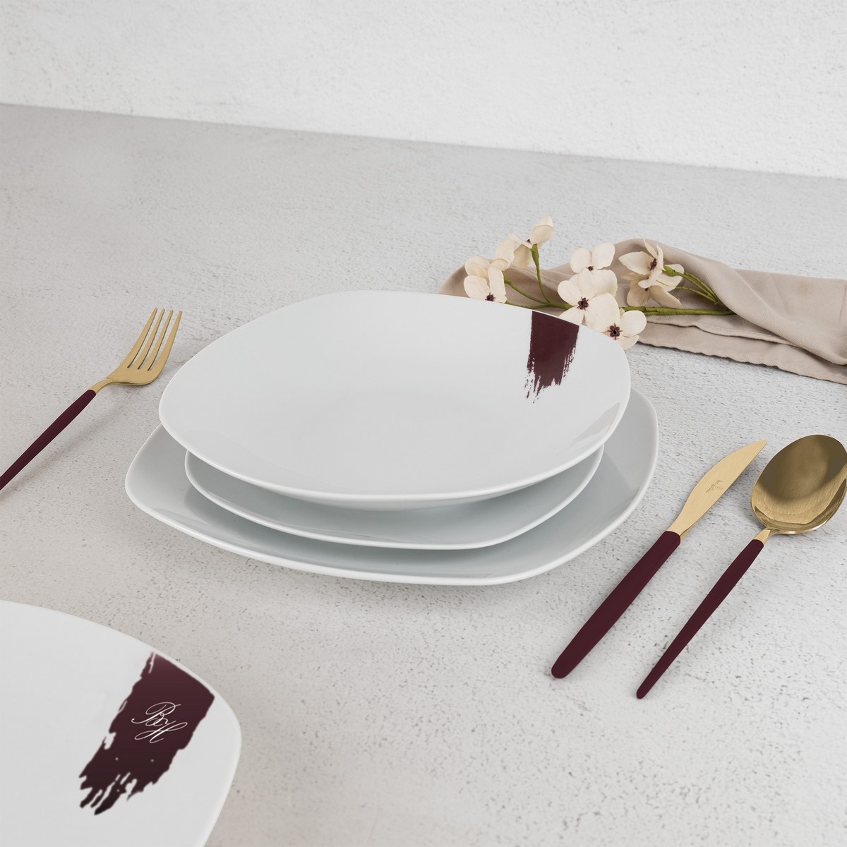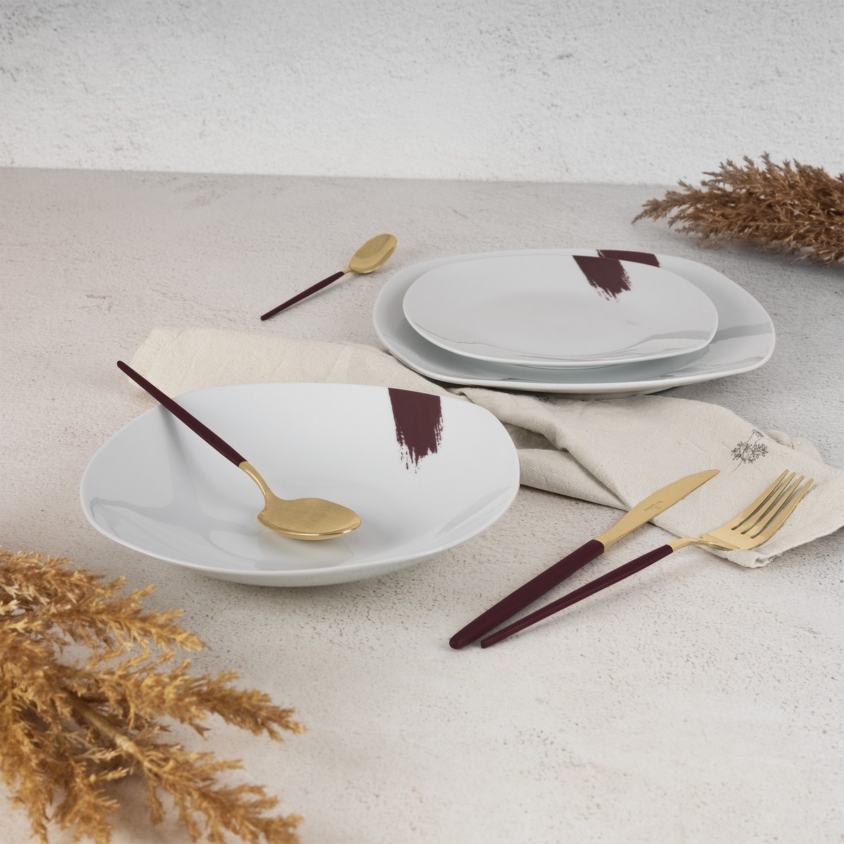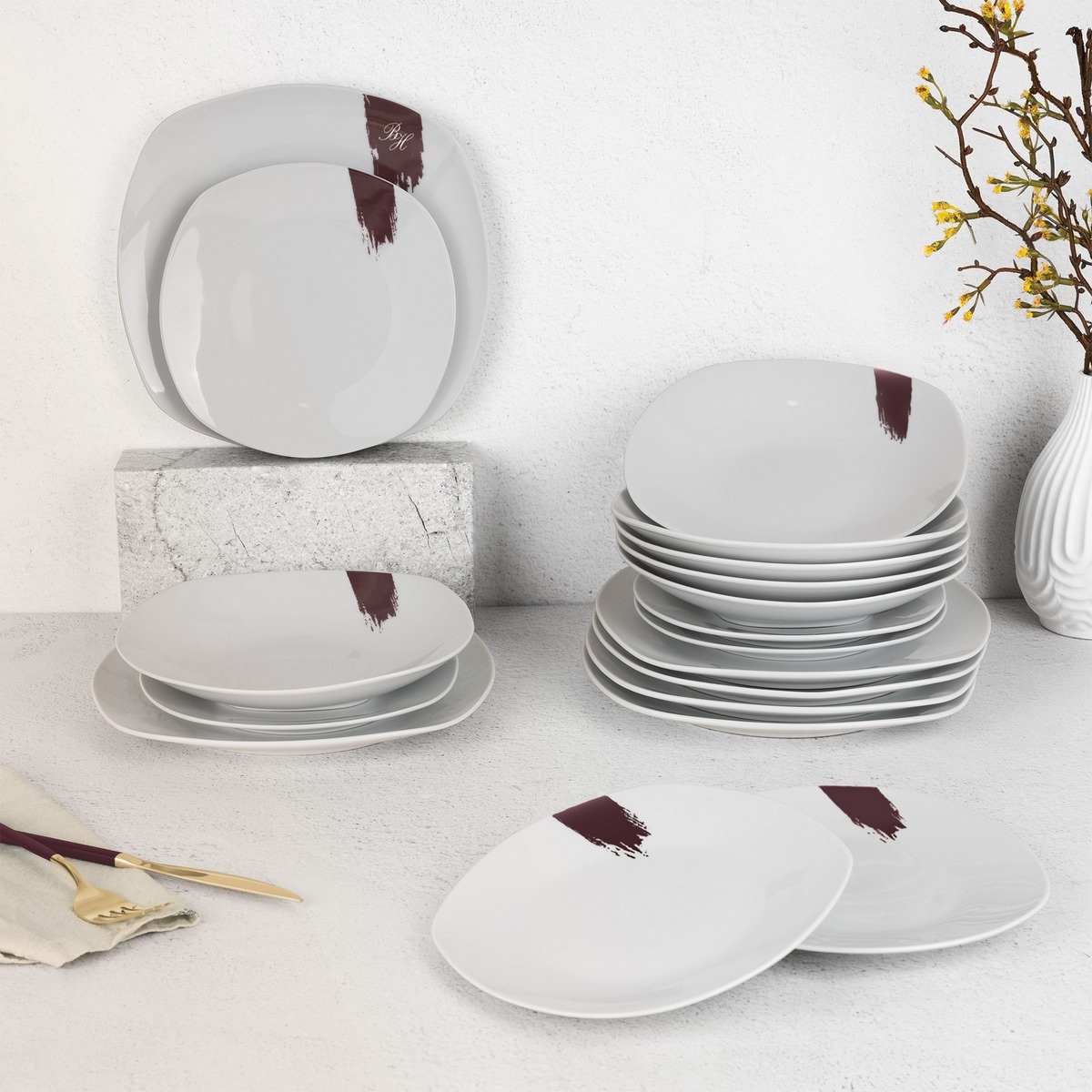 BerlingerHaus 18dílná sada talířů Leonardo, bílá-bordó