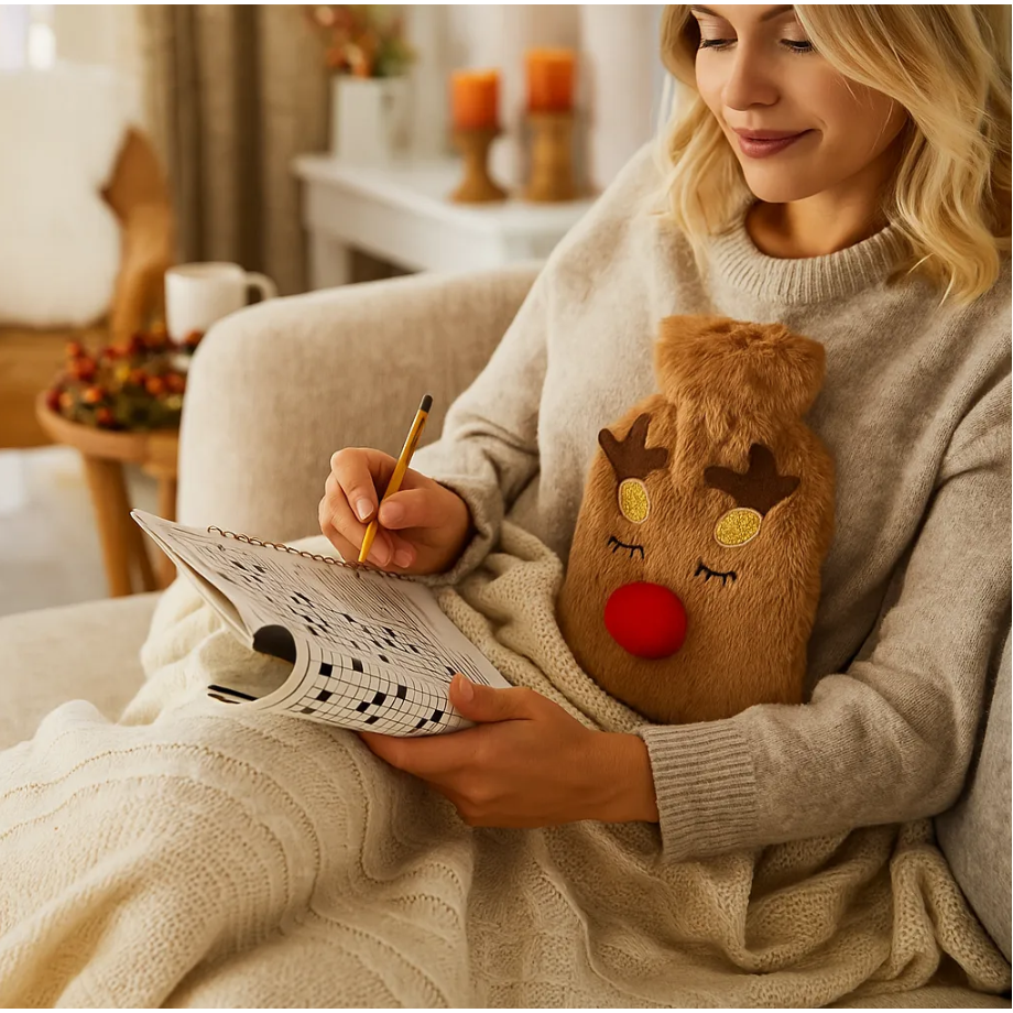 Roztomilý termofor Altom ve vzhledu soba je ideálním pomocníkem pro zimní relaxaci doma i na cestách. Objem 1,8 litru poskytne dostatek tepla až na 2 hodiny, takže rychle prohřeje ruce, břicho nebo dětskou postýlku a pomůže uvolnit napětí po chladném dni. Díky kompaktnímu provedení se snadno vejde do kabelky či batohu.Měkký hnědý obal s jemnou srstí, zavřenými očičky a typickým červeným nosem je příjemný na dotek a chrání pokožku před horkým povrchem termoforu. Obal lze jednoduše sundat a vyprat ručně, takže jej můžete udržovat stále čistý a připravený k použití.