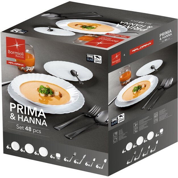 Bormioli Rocco 48dílná jídelní sada s příbory Prima & Hanna