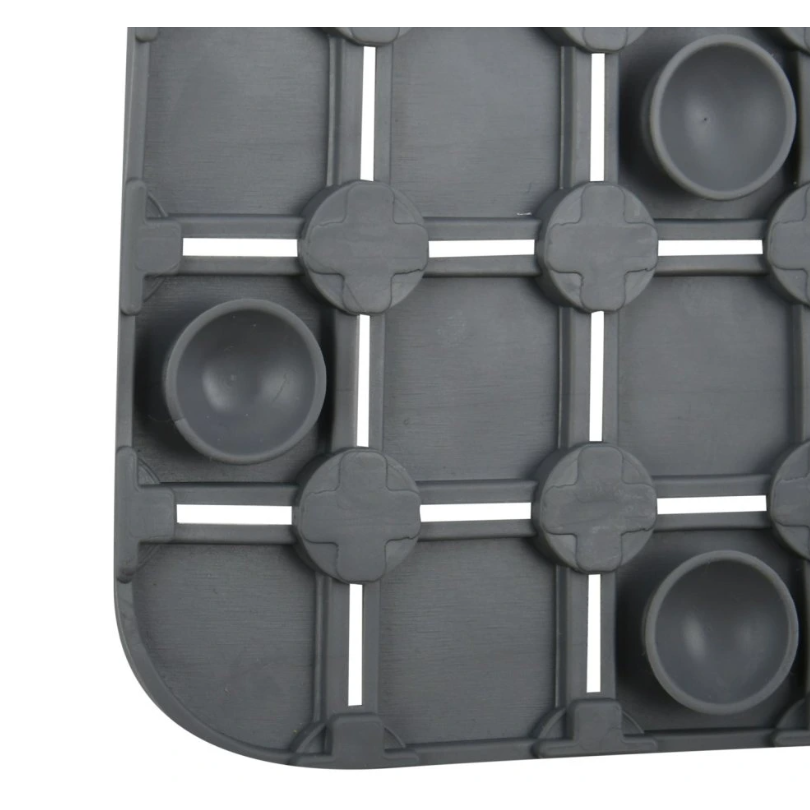 Protiskluzová podložka do sprchy QUADRO Premium je ideálním doplňkem pro každého, kdo si přeje zvýšit bezpečnost a pohodlí při sprchování. Díky svým rozměrům 54 × 54 cm skvěle padne do většiny sprchových koutů a poskytuje stabilní oporu při každém kroku. Je vhodná pro děti, seniory i osoby se sníženou pohyblivostí.Podložka je vyrobena z pružného a odolného SBS kaučuku, který je 100% recyklovatelný – ideální volba pro ty, kdo myslí i na životní prostředí. Spodní strana je vybavena přísavkami, které pevně přilnou k podlaze sprchového koutu a brání pohybu podložky. Odtokové otvory zajišťují efektivní odvádění vody, čímž přispívají k hygieně i rychlému schnutí.