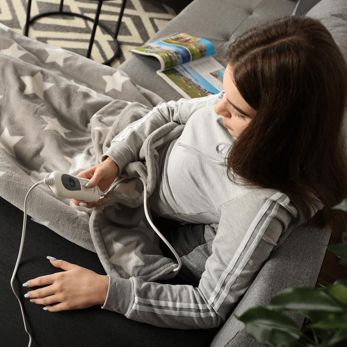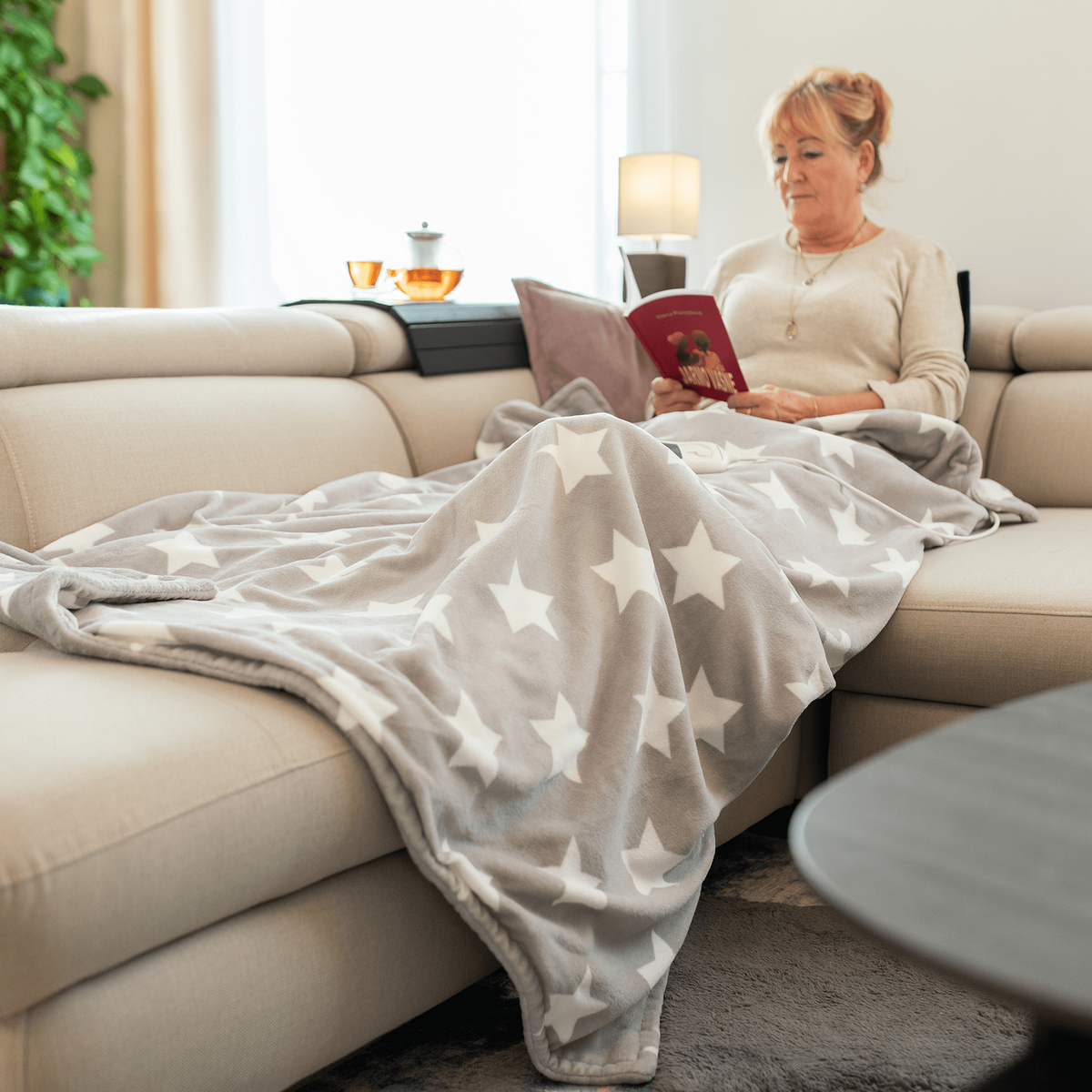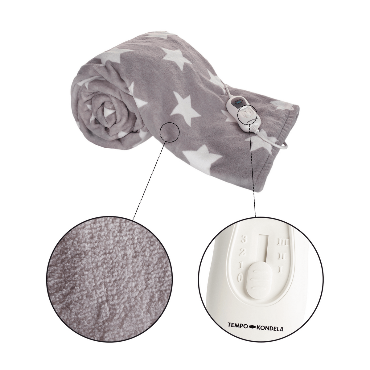 Elektrická vyhřívací deka MEDISA, hvězdy je ideálním řešením pro všechny, kteří milují teplo a pohodlí během zimních večerů. Jemný mikroplyš v šedé barvě s motivem hvězd poskytuje měkký, hřejivý a příjemný povrch, do kterého se snadno zabalíte po náročném dni. Velkorysé rozměry 130 × 180 cm zajistí dostatek prostoru i pro dva, takže se můžete zahřát sami nebo ve dvojici.Deka nabízí 3 úrovně vyhřívání s teplotním rozsahem 35–45 °C, díky kterým si upravíte teplotu přesně podle potřeby. Ovládání je jednoduché a přehledné díky dálkovému ovladači s LED indikátorem. Pro maximální bezpečnost je vybavena bezpečnostním čidlem proti přehřátí a praktickou funkcí automatického vypnutí po 3 hodinách. Automatické udržování nastavené teploty zajistí stabilní a příjemné teplo po celou dobu používání.Po odpojení ovladače lze deku ručně vyprat, takže ji snadno udržíte v čistotě. Díky své měkkosti, bezpečnosti a příjemnému designu je skvělým dárkem pro blízké i perfektním pomocníkem pro zimomravce.Parametry a specifikace materiál: mikroplyš barva: šedá / vzor hvězdy rozměry: 130 × 180 cm hmotnost: 1,8 kg tloušťka: 1,5 cm napětí: 220–240 V výkon: 120 W napájení: síťové délka kabelu: 2,3 m počet stupňů vyhřívání: 3 teplotní rozsah: 35–45 °C LED indikátor: ano automatické vypnutí po 3 hodinách: ano automatické udržování teploty: ano dálkový ovladač: ano možnost praní: ručně po odpojení ovladače zákaz: nebělit, nežehlit, chemicky nečistit, nesušit v sušičce bezpečnostní čidlo proti přehřátí: ano nevhodné pro děti do 3 let nepoužívat složené či zmačkané nevhodná k předehřátí lůžka