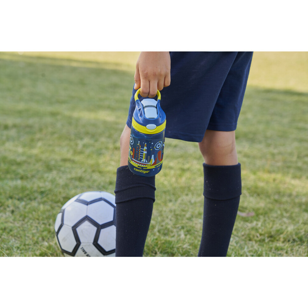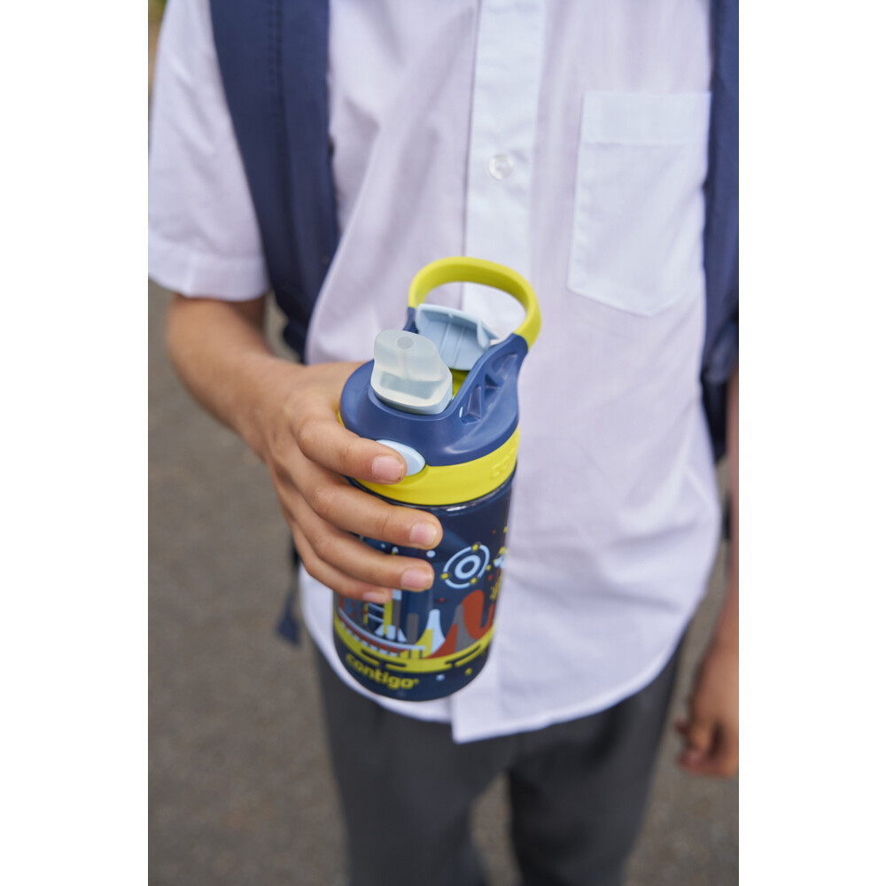 Dětská lahev Gizmo Flip Blue Nautical Space od značky Contigo je ideálním řešením pro školáky i předškolní děti, které potřebují mít nápoj neustále po ruce. Otevírání probíhá jednoduše – stačí stisknout tlačítko a vyskakovací brčko se samo vysune, takže pití zvládnou pohodlně jednou rukou. Pro rodiče je praktická zejména funkce ventilu proti rozlití, která chrání batohy i autosedačky před nečekaným únikem tekutin.Tělo lahve i víčko jsou vyrobeny z odolného plastu bez BPA, který je lehký, bezpečný a snadno se udržuje. Díky možnosti víčko kompletně rozebrat a brčko vyjmout je čištění velmi jednoduché. Všechny části je možné mýt v myčce v horním koši. Šikmé brčko je navrženo tak, aby děti pohodlně dosáhly i na poslední kapku. Lahev dobře padne do ruky, vejde se do většiny držáků na nápoje a díky měkkému poutku ji lze snadno nosit i připnout k batohu.Objem 420 ml poskytuje dostatek tekutin na dopolední vyučování, trénink nebo delší výlet. Lahev je vodotěsná a vhodná pro studené i vlažné nápoje, pro horké se z bezpečnostních důvodů nedoporučuje. Atraktivní design s motivem vesmíru a rakety si děti rychle oblíbí a pití se pro ně stane příjemnou součástí dne.Hlavní výhody produktu systém AUTOSPOUT s tlačítkem pro pití jednou rukou ventil proti rozlití chrání před únikem tekutin víčko lze plně rozebrat pro důkladné čištění vyjímatelné šikmé brčko pro pohodlné pití až do dna polypropylen bez BPA, lehký a bezpečný materiál vhodné do myčky nádobí (horní koš) praktické poutko pro snadné přenášení atraktivní design Blue Nautical SpaceObsah balení 1× dětská lahev 420 ml 1× víčko s tlačítkem AUTOSPOUT a ventilem proti rozlití 1× vyjímatelné šikmé brčko