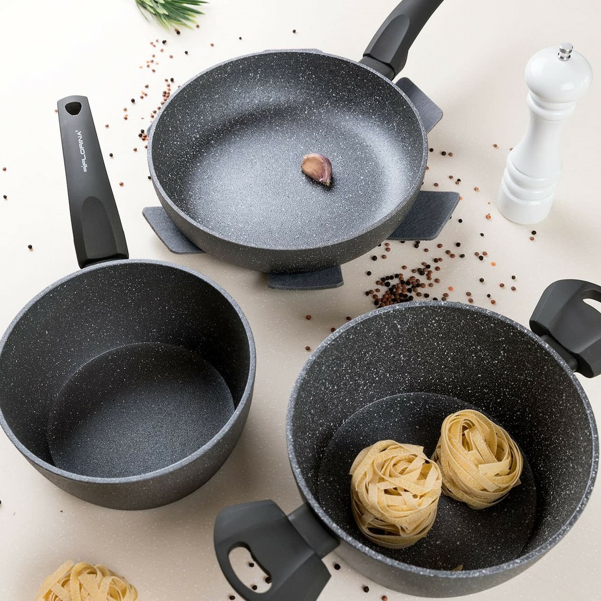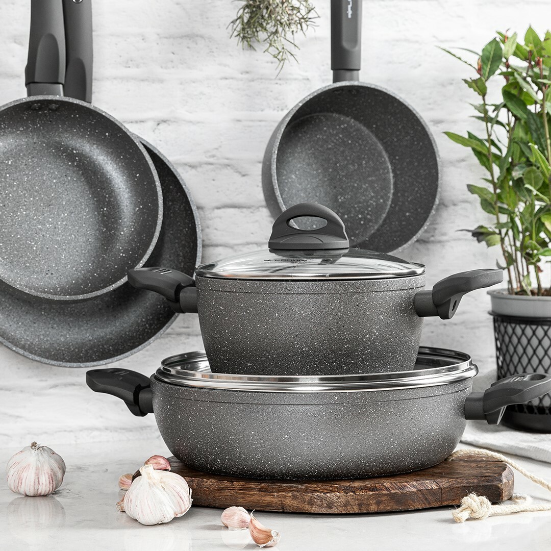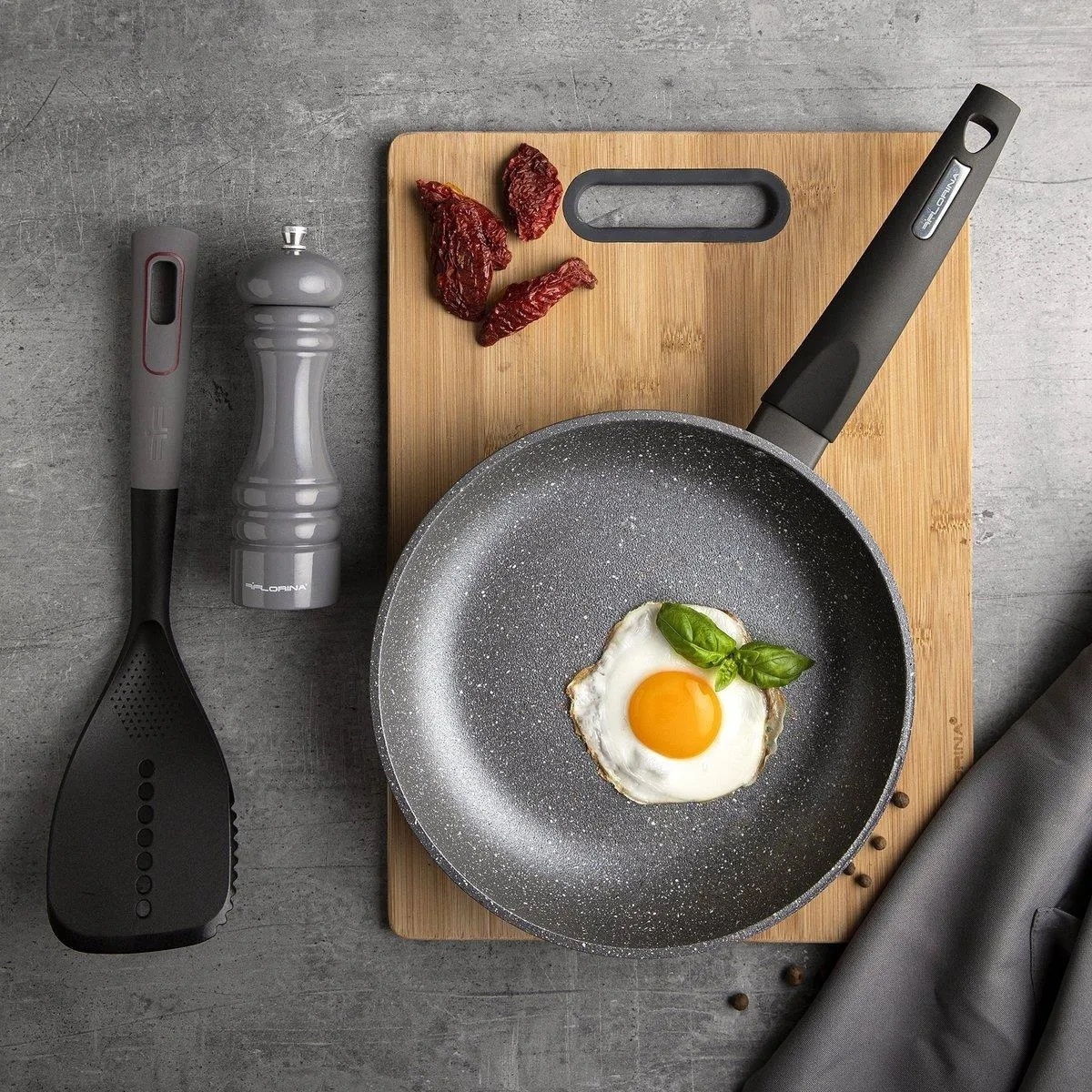 Pánev Lava od značky Florina o průměru 20 cm je ideální volbou pro přípravu větších porcí jídel. Vyrobená je z hliníku s výbornou tepelnou vodivostím, takže se rychle a rovnoměrně zahřívá a její 5vrstvá kamenná povrchová úprava Lava Stone zajišťuje dlouhou životnost, nepřilnavost a vysokou odolnost proti opotřebení. Skvěle se hodí pro smažení masa, ryb, zeleniny nebo přípravu pokrmů pro celou rodinu. Kolekce Lava, vytvořená ve spolupráci se šéfkuchařem Mateuszem Gesslerem, spojuje profesionální kvalitu a moderní vzhled. Pánev má ergonomickou bakelitovou rukojeť s povrchem Soft Touch, která se při vaření nezahřívá a umožňuje bezpečnou manipulaci. Speciální systém Air Cushion vytváří vrstvu horkého vzduchu mezi povrchem a potravinami, což brání připalování a umožňuje vařit s minimálním množstvím tuku. Pro vaše zdraví i bezpečí je povrch pánve zcela bez PFOA, olova a kadmia, takže při vaření nevznikají žádné škodlivé látky. Pánev je vhodná na všechny typy sporáků včetně indukce a díky snadné údržbě vám ušetří čas i práci. Je to robustní a spolehlivý pomocník, který zvládne každodenní používání i náročnější recepty. Hlavní výhody produktu 5vrstvý kamenný povrch Lava Stone pro maximální odolnost rychlé a rovnoměrné zahřívání díky hliníkové konstrukci nepřilnavý povrch pro zdravější vaření s minimem tuku ergonomická rukojeť Soft Touch, která se nezahřívá systém Air Cushion proti připalování potravin bezpečné složení bez PFOA, olova a kadmia vhodná na všechny typy sporáků včetně indukce Obsah balení 1× pánev Lava 20 cm