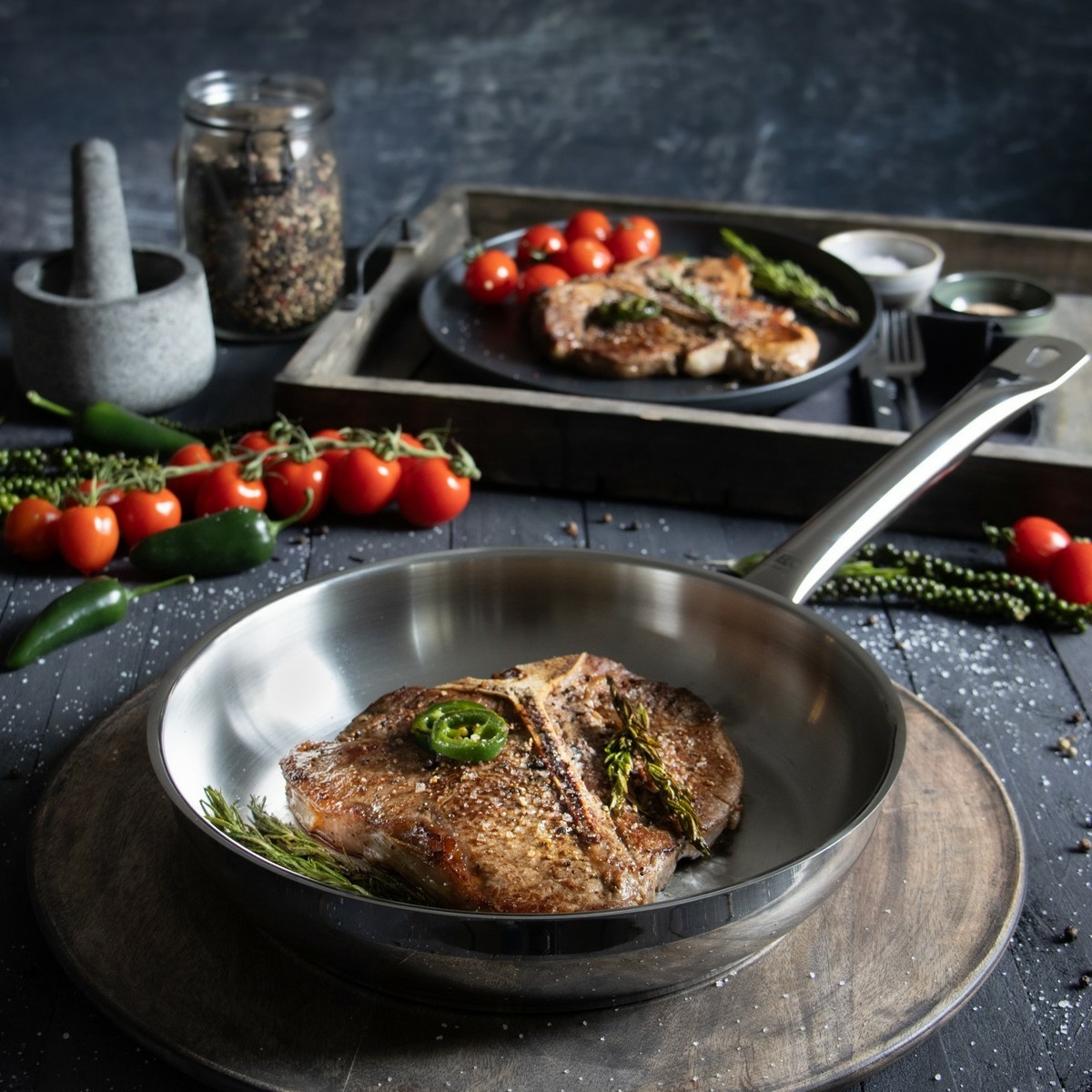Pánev Profi Therm od německé značky ELO o průměru 28 cm je navržena pro každodenní intenzivní vaření bez kompromisů. Vyrobena je z prvotřídní nerezové oceli 18/10 a kombinuje elegantní vzhled s maximální funkčností. Saténově matný vnitřní povrch je praktický pro každodenní použití a snadno se čistí, zatímco vnější vysoce leštěná plocha dodá vaší kuchyni profesionální vzhled. Kapslové sendvičové dno s hliníkovým jádrem se postará o rychlé a rovnoměrné rozložení tepla, což je klíčové pro efektivní vaření i smažení bez připalování.Jednou z výrazných předností této pánve je extra dlouhá dutá rukojeť, která zůstává chladná i při vysokých teplotách a díky robustnímu nýtovanému uchycení je zajištěno bezpečné držení. Promyšlený nalévací okraj umožňuje přesné přelévání bez nepořádku, ať už pracujete s omáčkou, výpekem nebo šťávou. Odolná konstrukce bez nepřilnavého povrchu umožňuje použití kovového náčiní a pánev můžete bez obav vkládat do trouby až do 240 °C.Tento model je ideální volbou nejen pro běžné domácnosti, ale i pro náročné kuchaře. Hodí se pro rychlou přípravu masa, ryb, zeleniny i pokrmů bez tuku, kdy je požadována maximální kontrola nad procesem smažení. Díky možnosti mytí v myčce a dlouhé životnosti bude skvělým pomocníkem ve vaší kuchyni po dlouhá léta.Hlavní výhody pánve Profi Therm: rychlé a rovnoměrné rozložení tepla díky kapslovému dnu vyrobena z odolné nerezové oceli 18/10 s elegantními povrchy vhodná pro všechny typy varných desek včetně indukce extra dlouhá dutá rukojeť pro bezpečné a pohodlné držení nalévací okraj pro snadné přelévání bez kapání vhodná do trouby do 240 °C snadné a rychlé čištění, vhodná do myčky nádobí odolná proti poškrábání a mechanickému poškození ideální pro přípravu pokrmů s minimem tuku nebo zcela bez tukuObsah balení: 1x pánev Profi Therm Ø 28 cm
