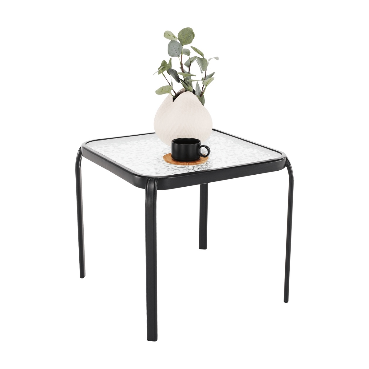 Minimalistický a praktický – přesně takový je čtvercový příruční stolek RAMOL, který se ideálně hodí na balkon, terasu nebo zahradu. Kombinace černé ocelové konstrukce a tvrzeného skla působí moderně a zároveň zajišťuje dlouhou životnost i při venkovním použití.Horní deska z odolného skla s jemnou texturou je snadno omyvatelná a nabízí dostatek prostoru pro drobné občerstvení, nápoje nebo dekorace. Stolek je lehký, a tak se snadno přenáší i skladuje.Hlavní výhody produktu: stabilní konstrukce z oceli tvrzené sklo s moderní texturou ideální doplněk k zahradnímu posezení lehký a snadno přemístitelný vhodný do exteriéruParametry a specifikace: materiál: tvrzené sklo / ocel barva: černá rozměry (š x h v): 50 x 50 x 46 cm styl: moderní, zahradní dodáváno v demontu