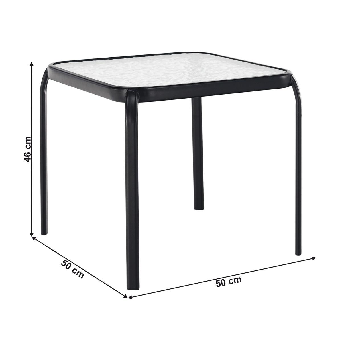 Zahradní příruční stůl, černá ocel/tvrz. sklo, RAMOL