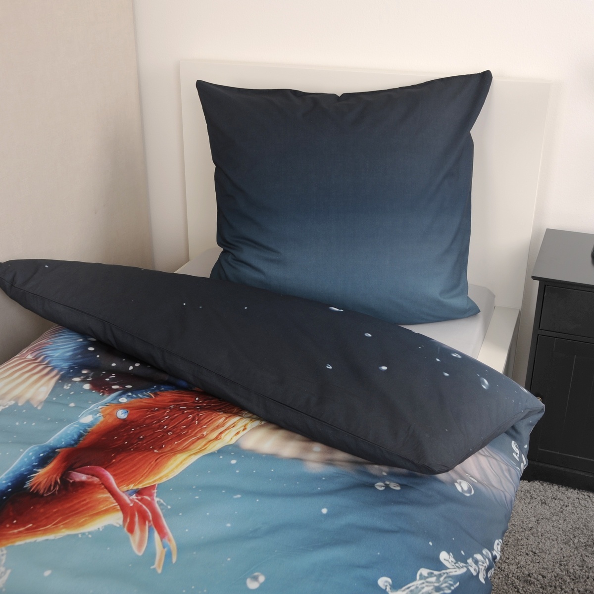 Objevte pohodlí a stylový design s povlečením HERDING Young Collection – Ledňáček ze kvalitní bavlny. Díky praktickému zipu je povlékání rychlé a snadné, povlečení je navíc nenáročné na údržbu a vhodné do sušičky.Hlavním lákadlem je okouzlující motiv ledňáčka. Živé barvy a detailně propracovaný design vnesou do vaší ložnice přírodní a klidnou atmosféru. Ledňáček je symbolem klidu, ale zároveň dodá vašemu interiéru svěží a barevný akcent. Toto povlečení je ideálním dárkem pro všechny milovníky ptactva.Povlečení má certifikát Oeko-Tex Standard 100.Souprava obsahuje: 1x povlak na polštíř 80 x 80 cm 1x povlak na přikrývku 135 x 200 cm