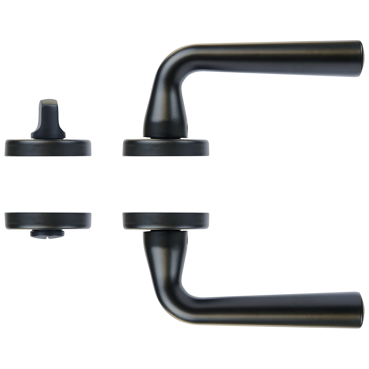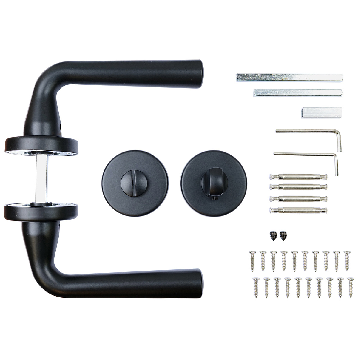 Elegantní ocelové dveřní kování Richter Czech RK.LOPAR v provedení matná černá je ekonomickým a přitom velmi praktickým řešením pro interiérové dveře. Díky kulatým rozetám působí nadčasově a decentně, hodí se tak do moderních i klasických interiérů. Povrchová úprava v matné černé barvě dodává klikám atraktivní vzhled a zároveň chrání povrch před opotřebením.Kování je vybaveno vratnou pružinou klik, která zajišťuje hladký a pohodlný chod. Dodává se pro dveře o tloušťce 38–60 mm, přičemž praktické dvě sady šroubů není nutné zkracovat. Montáž je rychlá a jednoduchá – v balení najdete veškerý spojovací materiál i návod. V provedení WC varianta obsahuje čtyřhran 6 × 6 mm s redukcí 6/8 mm, což zajišťuje univerzální využití.S hmotností 0,6 kg jde o pevné a spolehlivé kování, které díky své konstrukci poskytuje dlouhou životnost i při každodenním používání.Hlavní výhody produktu: moderní černé provedení v matné barvě vratná pružina pro komfortní používání odolná ocelová konstrukce dvě sady šroubů bez nutnosti zkracování jednoduchá montáž včetně spojovacího materiálu varianta WC s čtyřhranem 6 × 6 mm a redukcí 6/8 mmObsah balení: 1x pár klik včetně mechaniky 2x sada šroubů pro různé tloušťky dveří 1x sada spojovacího materiálu 1x návod k montáži (WC varianta: čtyřhran 6 × 6 mm + redukce 6/8 mm)Parametry a specifikace: materiál: ocel povrch: matná černá (CE) hmotnost: 0,6 kg (WC varianta) vratná pružina: ano tloušťka dveří: 38–60 mm rozměry: viz technický výkres (klika 135 mm, rozeta Ø 53 mm)