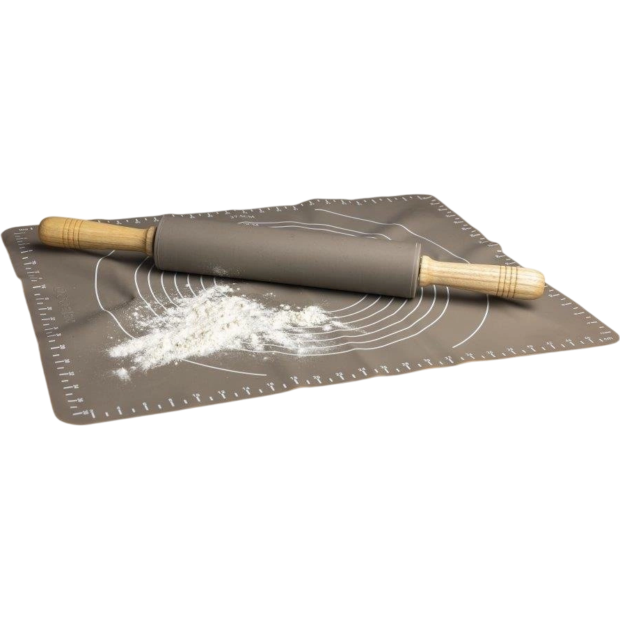 Váleček s dřevenými madly je vyroben z prvotřídního zdravotně nezávadného silikonu v kombinaci s plastem. Povrch válečku je nepřilnavý, těsto se na něj nelepí a výborně se s ním pracuje. Pracovní plocha válečku je 23 cm, celková délka 47 cm. Váleček je otočný.
