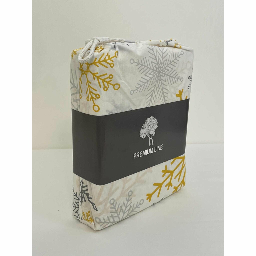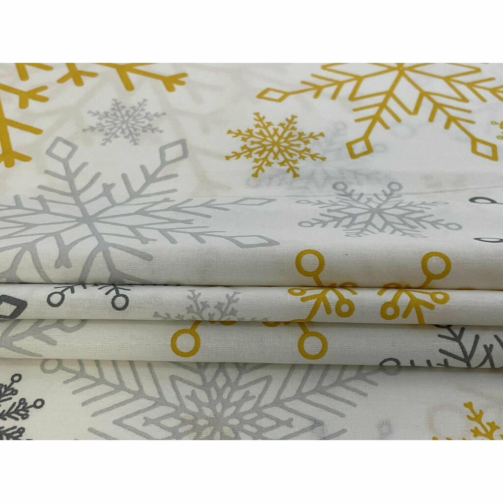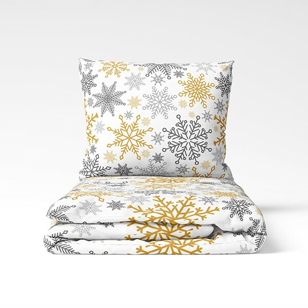 Vánoční bavlněné povlečení Vločky zlaté, 140 x 200 cm, 70 x 90 cm