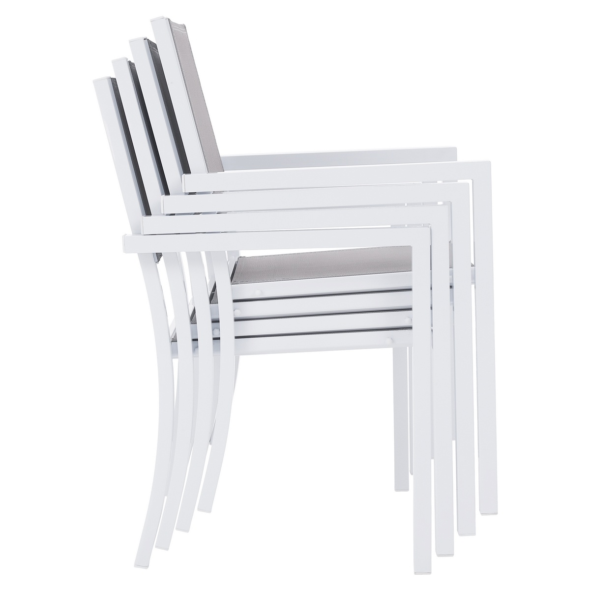 Zahradní stohovatelná židle, bílá ocel/světle šedá, DORIO