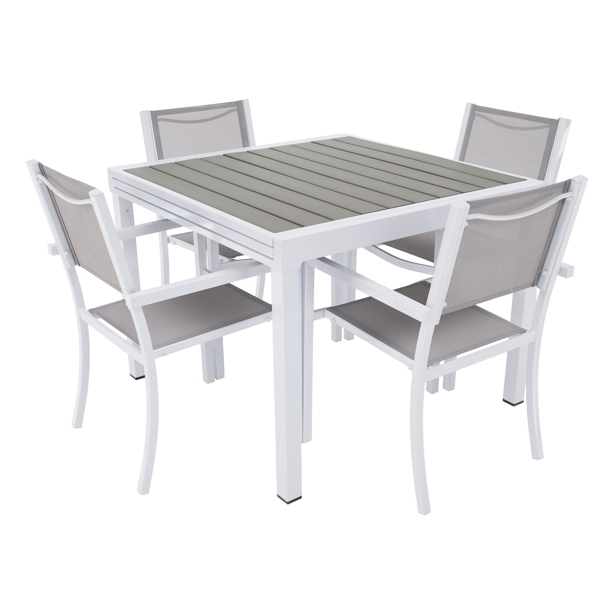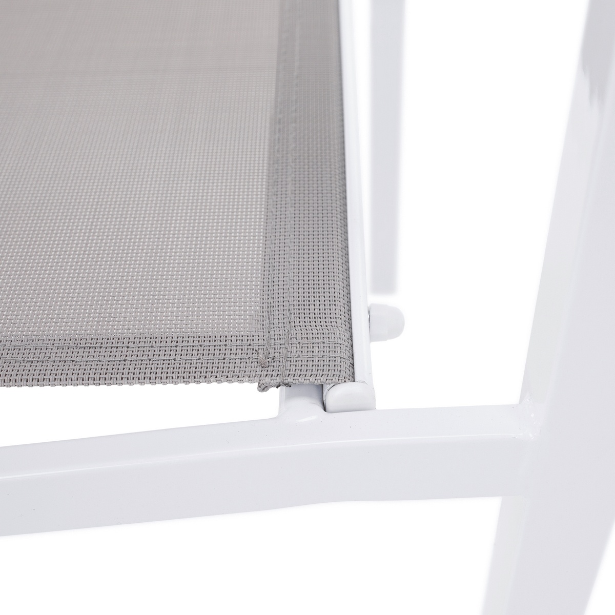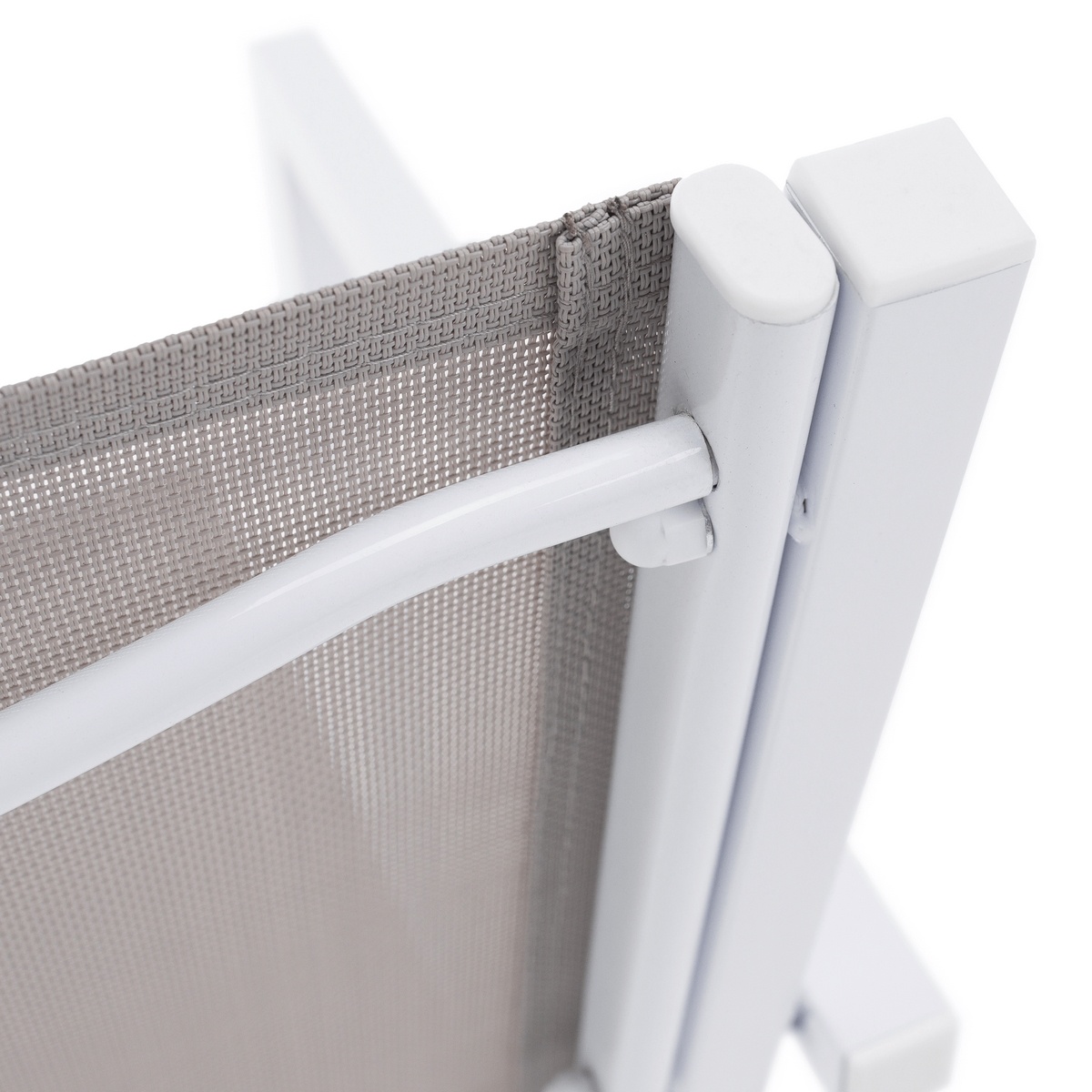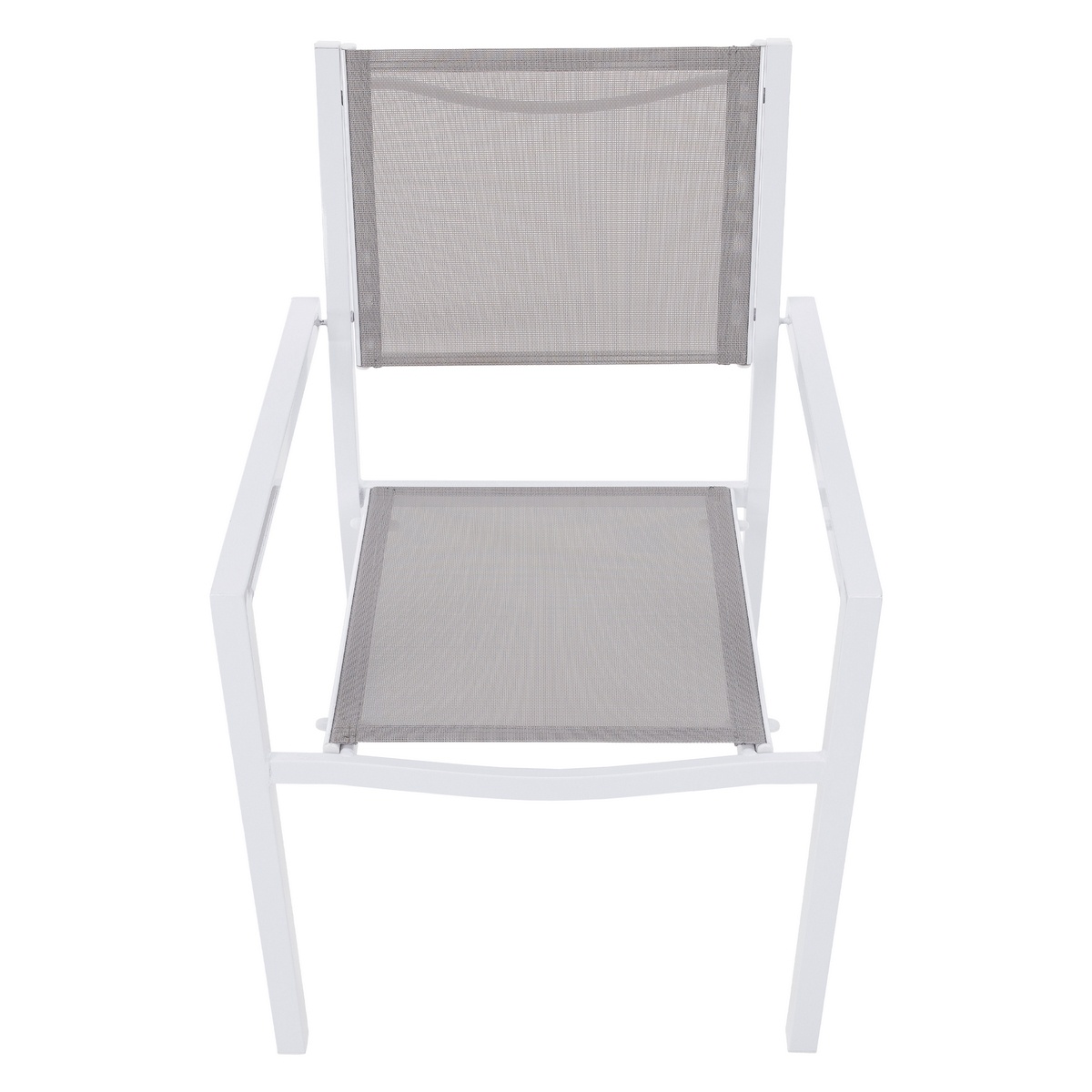 Elegantní zahradní židle DORIO spojuje čistý design s maximální funkčností. Konstrukce z pevné oceli v bílé barvě vyniká vysokou odolností a moderním vzhledem, zatímco sedák a opěradlo z umělé textilie ve světle šedém odstínu zajišťují pohodlí i při delším posezení.Židle je vybavena područkami pro lepší oporu při vstávání i relaxaci. Díky možnosti stohování je navíc praktická na skladování mimo sezónu nebo při větších akcích.Součástí balení není stůl.Hlavní výhody produktu: moderní kombinace bílé konstrukce a světle šedé textilie pevná ocelová konstrukce s vysokou odolností komfortní sedák a opěradlo z prodyšného materiálu stohovatelnost šetří místo při uskladnění vhodná pro zahrady, terasy i balkonyParametry a specifikace: materiál: ocel / umělá textilie barva: bílá / světle šedá rozměry (š x h x v): 56 x 62 x 86 cm výška sedu: 39 cm hloubka sedu: 46,5 cm výška zádové opěrky: 47 cm nosnost: 90 kg konstrukce: stohovatelná, s područkami určení: exteriér dodáváno v monte
