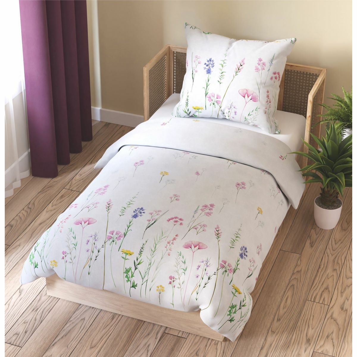Saténové povlečení z česané bavlny zdobí něžný potisk nádherných lučních květin na čistě bílém podkladu.Speciální úprava materiálu z česané bavlny se stará o to, že je povlečení neobyčejně hebké, lesklé a na dotek hedvábně jemné.Díky procesu česání jsou z vláken odstraněny všechny nečistoty a krátká vlákna, což zajišťuje vysokou pevnost a dlouhou životnost.Saténová vazba pak dodává látce její charakteristickou elegantní hebkost a jemný lesk.Dopřejte si luxus, který si zasloužíte.Povlečení je prodyšné a skvěle odvádí vlhkost, což vám zajistí klidný a příjemný spánek v každém ročním období.Povlečení vyniká nejen vysokou kvalitou materiálu, ale také nádherným designem, který dodá vaší ložnici šmrnc a eleganci.Vybrané barvy jsou příjemné pro oko a snadno se sladí s celkovým vzhledem vašeho interiéru.Certifikace Oeko-Tex Standard 100 potvrzuje, že povlečení je zdravotně nezávadné a vyrobené bez použití škodlivých chemikálií.Můžete si tak být jisti, že povlečení je bezpečné i pro ty nejcitlivější uživatele a je vhodné pro alergiky.Vychutnejte si každou noc pohodlí a luxus, který vám toto saténové povlečení nabízí, a nechte se unášet do říše snů v náručí nejlepší kvality a elegance.Souprava obsahuje: 1x povlak na polštář 70 x 90 cm 1x povlak na přikrývku 140 x 200 cm