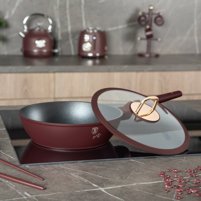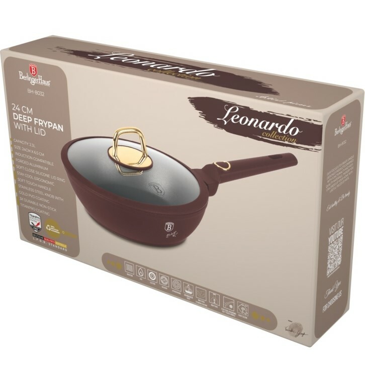 Hluboká pánev s poklicí Leonardo od značky BerlingerHaus je ideální volbou pro každodenní vaření i kulinářské experimenty. Vyrobena je z kovaného hliníku s trojitou nepřilnavou vrstvou TitanPro, díky čemuž zajišťuje perfektní rozvod tepla, vysokou odolnost proti poškrábání a možnost vaření s minimálním množstvím tuku.S průměrem 24 cm, výškou 6,5 cm a objemem 2,3 l je ideální pro přípravu omáček, dušené zeleniny, těstovin či menších porcí masa. Součástí je tvrzená skleněná poklicese silikonovým těsněním, otvorem pro únik páry a elegantním nerezovým úchytem se zlatou povrchovou úpravou. Ergonomická soft-touch rukojeť zůstává chladná i při delším vaření, což zajišťuje bezpečnou manipulaci.Díky indukčnímu turbo dnu se pánev rychle a rovnoměrně zahřívá a je kompatibilní se všemi typy sporáků. Povrch neobsahuje PFOA, olovo ani kadmium, takže je zdravotně nezávadný a ekologicky šetrný. Matná bordeaux barva dodá vaší kuchyni styl a luxusní vzhled.Hlavní výhody produktu: kovaný hliník s trojitou nepřilnavou vrstvou TitanPro ideální pro menší až střední porce skleněná poklice s otvorem pro únik páry a silikonovým těsněním ergonomická rukojeť s měkkým povrchem, která zůstává chladná indukční turbo dno pro rychlý a úsporný ohřev zdravotně nezávadný povrch bez PFOA, olova a kadmiaObsah balení: 1x hluboká pánev 24 × 6,5 cm (2,3 l) 1x skleněná poklice se silikonovým okrajem