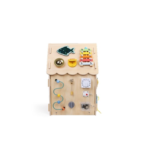 Motorický domeček plný aktivit je perfektní volbou pro zvídavé děti od 3 let, které rády objevují nové věci a trénují své dovednosti hrou. Tento multifunkční domeček nabízí široké spektrum činností – od zapínání a přezek, přes hudební nástroje, až po časovače, ozubená kolečka či zámky. Každá stěna domečku je navržena tak, aby stimulovala jinou oblast dětského rozvoje – jemnou motoriku, logické myšlení, koordinaci pohybů nebo smyslové vnímání.Na střeše najdete barevný xylofon, cinkací zvonek, otočné kotouče a senzorické rybičky, které rozvíjejí sluch i hmat. Boční panely obsahují různé přezky, knoflíky, šněrování i hodiny s pohyblivými ručičkami. Nechybí ani bludiště s korálky, spínač, časovač, zvukový mechanismus nebo otočný knoflík. Děti se tak hravou formou učí praktickým dovednostem, jako je zavazování tkaniček, otáčení knoflíkem nebo ovládání spínačů.Rozměry domečku 31,5 × 31 × 45 cm zajišťují dostatek prostoru pro hru, přitom je konstrukce dostatečně kompaktní, aby se vešla do dětského pokoje. Vyrobený je z kvalitního dřeva, plastu, kovu a textilních prvků, což zajišťuje bezpečné a odolné provedení. Tento domeček je ideální nejen pro domácí prostředí, ale také do školek a dětských koutků, kde slouží jako dlouhodobý vzdělávací prvek.Hlavní výhody produktu: více než deset různých aktivit na jednom místě rozvoj motoriky, soustředění a praktických dovedností barevný xylofon, hodiny, přezky, zipy i knoflíky robustní konstrukce vhodná pro každodenní hraní kvalitní kombinace dřeva, plastu, kovu a tkaninyObsah balení: 1x multifunkční motorický domečekParametry a specifikace: rozměry: 31,5 × 31 × 45 cm materiál: dřevo, kov, plast, tkanina věk: od 3 let údržba: otírat suchým nebo vlhkým hadříkem