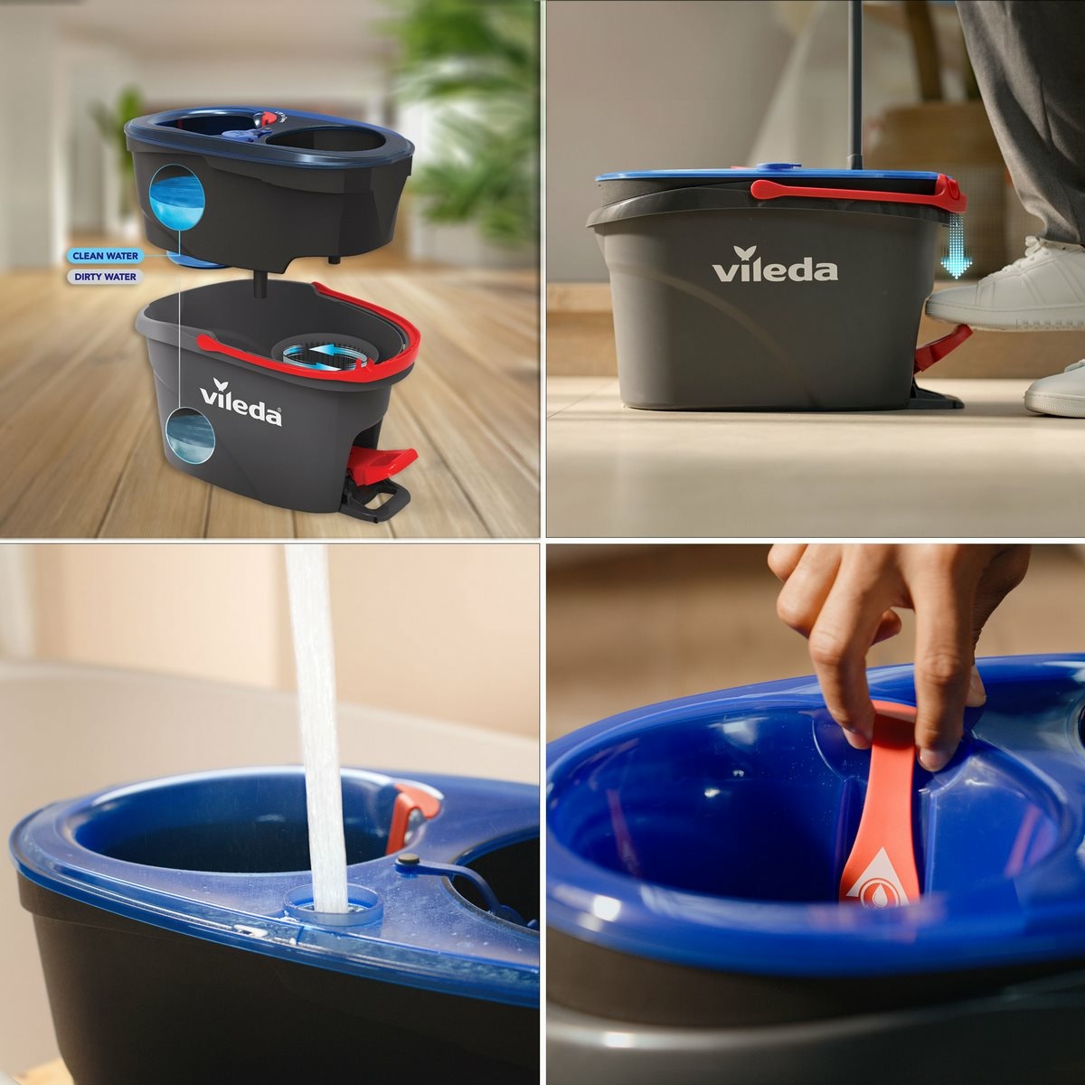 H2Pro třásňový rotační mop od značky Vileda představuje moderní řešení pro dokonalý úklid bez námahy. Je vybaven inovativním dvoukomorovým systémem kbelíku, který odděluje čistou a špinavou vodu. Při každém máchání tak používáte pouze čistou vodu, což zaručuje hygieničtější a účinnější vytírání všech typů tvrdých podlah. Elegantní design v kombinaci černé, modré a červené barvy doplňuje praktická konstrukce s důrazem na stabilitu a snadné používání.Kbelík je opatřen praktickým pedálem, který umožňuje ždímání bez ohýbání a kontaktu rukou s vodou. Díky systému odstřeďování si můžete zvolit ideální vlhkost mopu podle typu podlahy. Tento mechanismus usnadňuje práci a zajišťuje rovnoměrné čištění bez zbytečných kapek vody. Mop je vybaven trojúhelníkovou hlavicí, která snadno dosáhne i do rohů, pod nábytek nebo podél lišt, takže žádné místo nezůstane nečisté.Třásně jsou vyrobeny ze 100%mikrovlákna, které účinně zachytává nečistoty i s menším množstvím čisticích prostředků. Mop se snadno udržuje – návlek lze prát v pračce, čímž se prodlužuje jeho životnost a zachovává čistota při každém použití. Ergonomická teleskopická tyč se pohodlně drží a přizpůsobí se výšce uživatele. Tento model zaručuje kvalitu a dlouhou životnost, podpořenou prodlouženou zárukou 5 let. Hlavní výhody produktu dvoukomorový systém odděluje čistou a špinavou vodu ždímání pomocí pedálu bez nutnosti ohýbání a kontaktu s vodou trojúhelníková hlavice dosáhne do všech rohů 100% mikrovlákno pro účinné odstranění nečistot návlek mopu lze prát v pračce vhodný pro všechny typy tvrdých podlah prodloužená záruka 5 letObsah balení 1× kbelík s dvoukomorovým systémem a ždímacím mechanismem 1× rotační třásňový mop s mikrovláknovou hlavicí