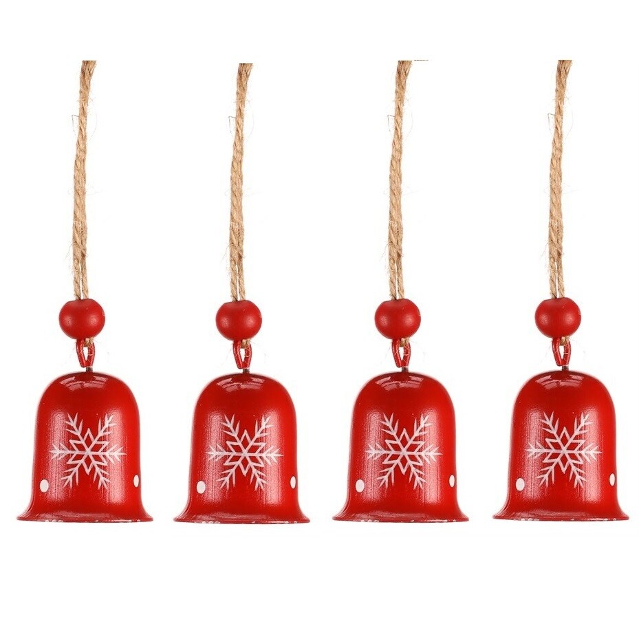 Sada závěsných vánočních zvonečků, 4 ks, červená