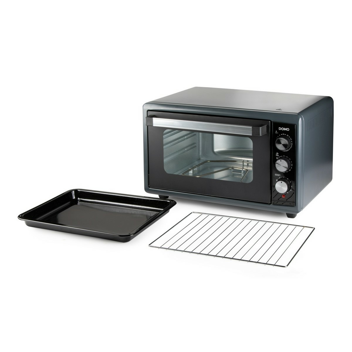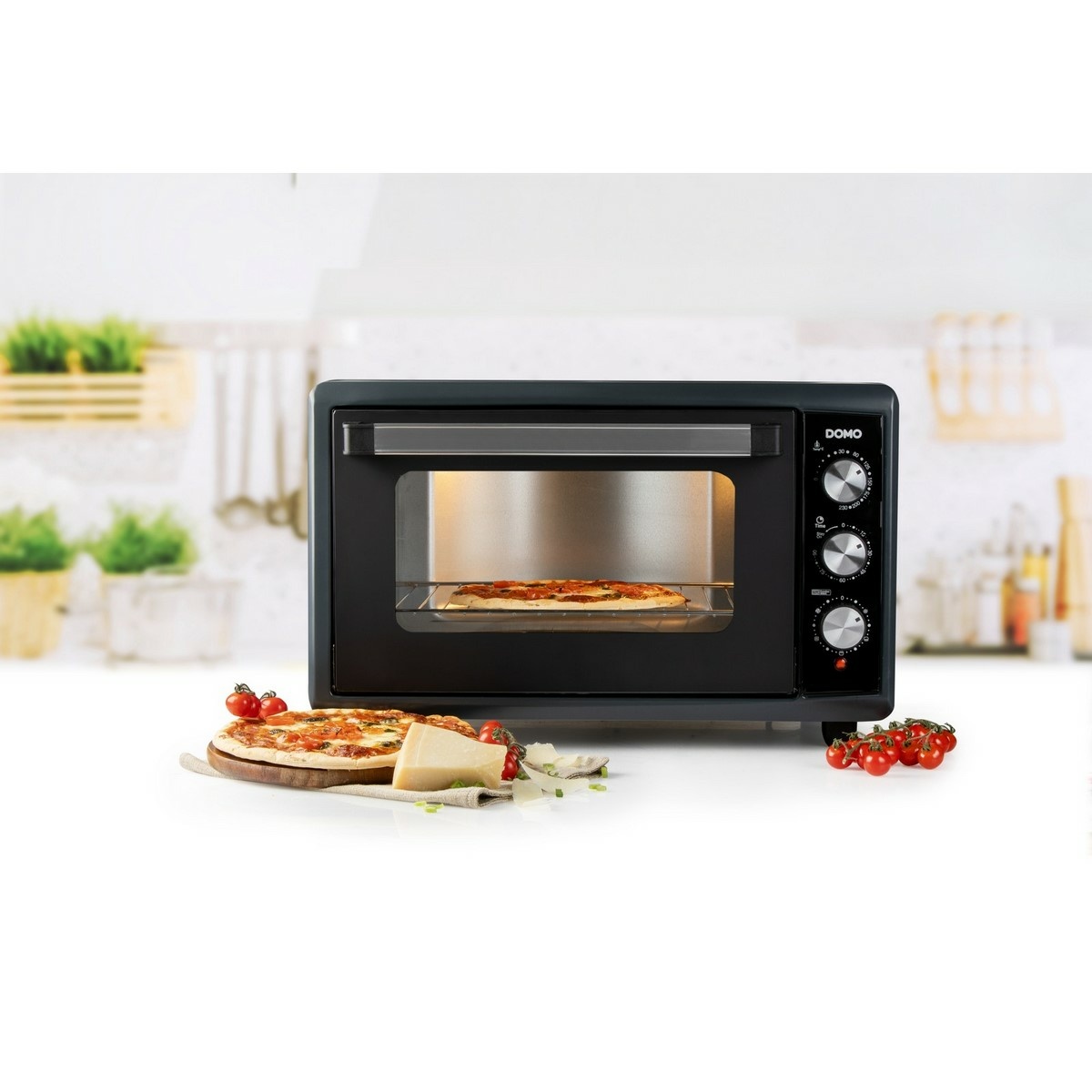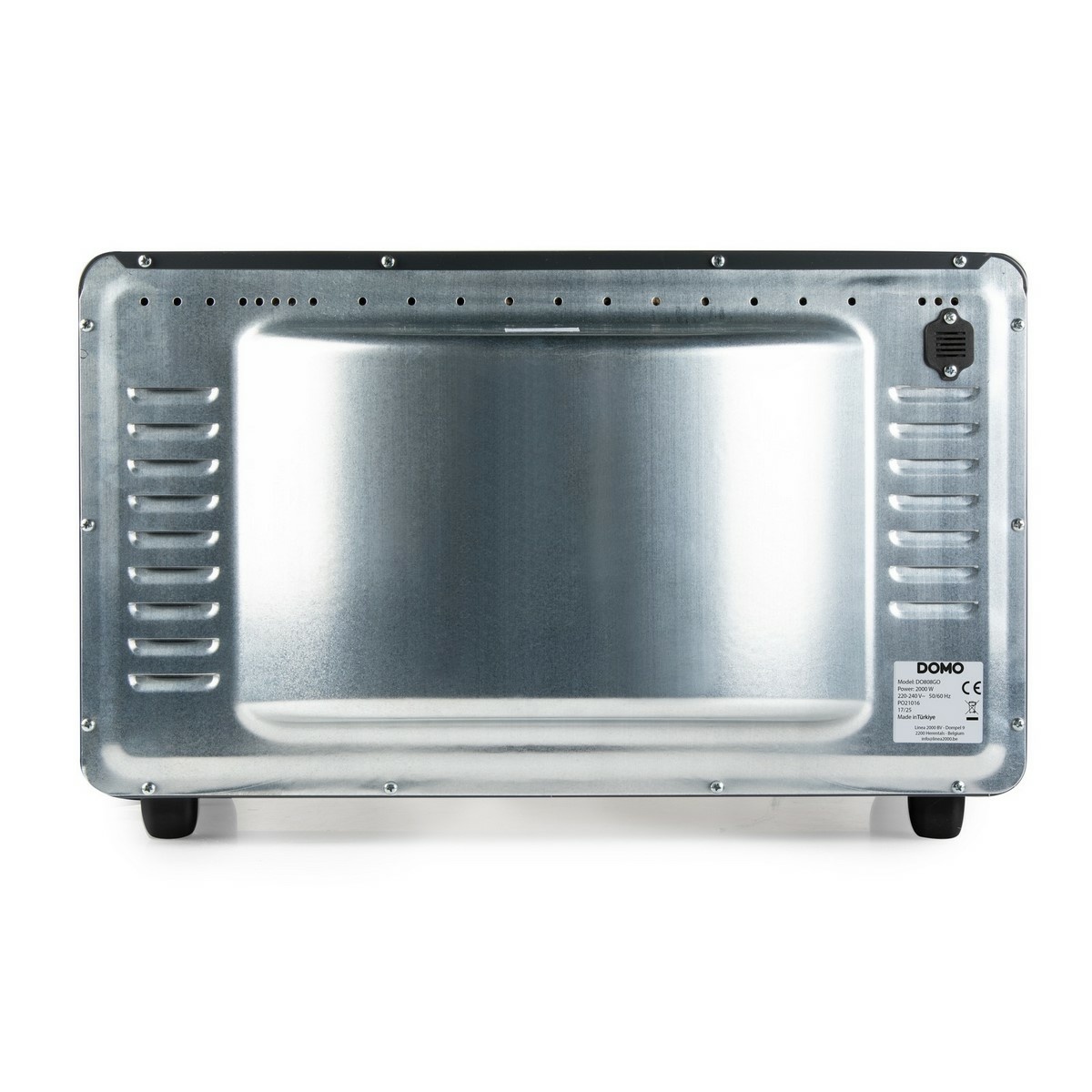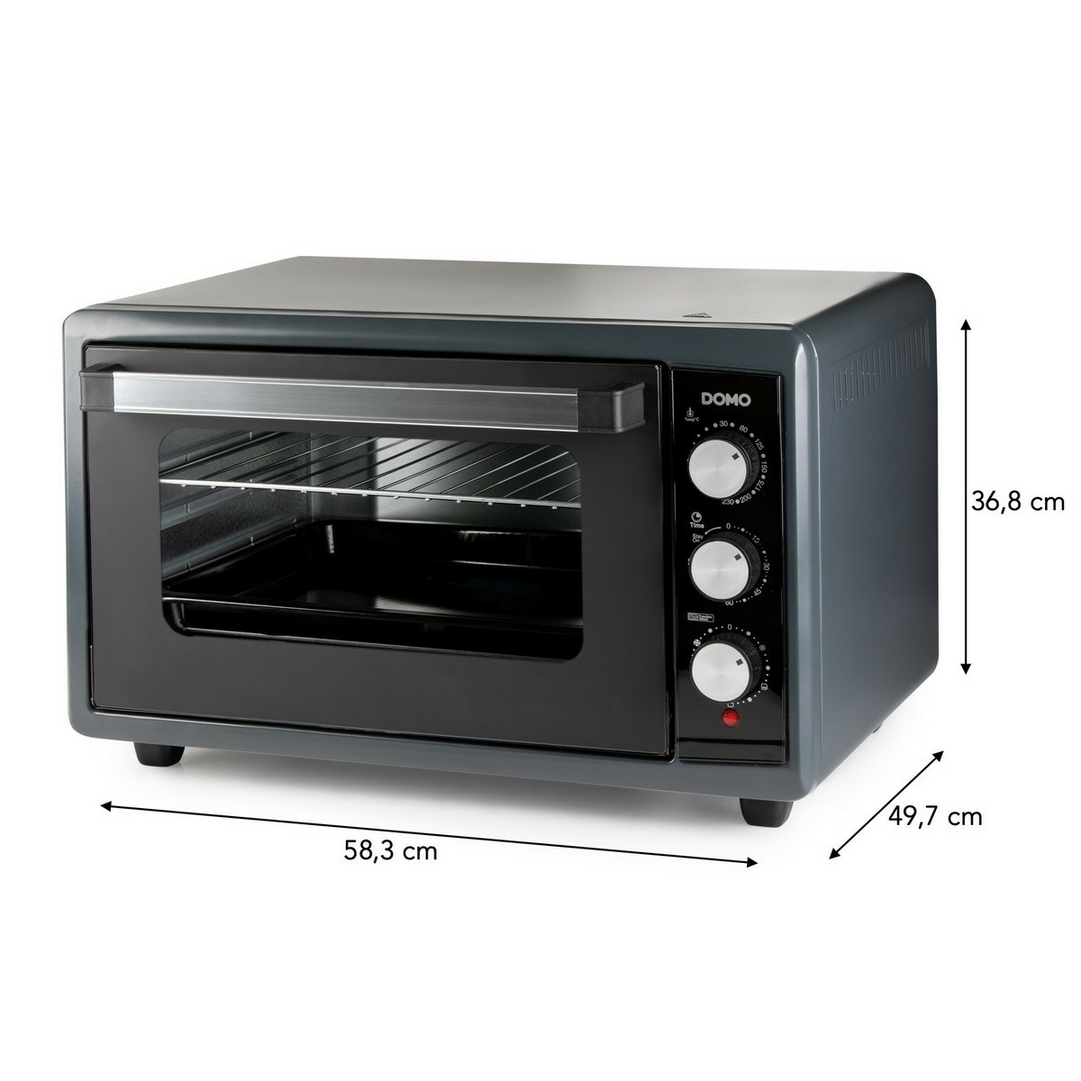 DOMO DO808GO je multifunkční volně stojící elektrická trouba s velkým objemem 50 l, ideální pro pečení, grilování i zapékání. Nabízí čtyři funkce ohřevu a široký rozsah teplot 30–230 °C, takže snadno připravíte vše od pizzy až po pečené maso. Zaoblená zadní stěna poskytuje více prostoru a umožňuje pečení velkých kulatých pokrmů až do průměru 40 cm.Rovnoměrné propečení zajišťuje konvekce (horký vzduch), zatímco jednoduché mechanické ovládání a 90minutový časovač usnadňují každodenní použití. Díky vnitřnímu osvětlení a dvojitému sklu průzoru máte neustálý přehled o tom, co se v troubě děje, aniž byste museli otevírat dvířka. Tři polohy pro plech nebo rošt dodávají flexibilitu při vaření.Trouba se rychle nahřívá – maximální teploty dosáhne už za 5 minut. Chladný dotykový povrch, nerezová rukojeť a kvalitní topná tělesa zajišťují bezpečný a spolehlivý provoz. Protiskluzové nožičky drží troubu pevně na místě a snadno čistitelný vnitřní povrch výrazně zjednodušuje údržbu.Technické parametry příkon: 2000 W režimy ohřevu: spodní / horní / spodní + horní / konvekce barva: antracit tři úrovně pro plech / rošt rozměry přístroje: 58,3 × 49,7 × 36,8 cm hmotnost přístroje: 11,2 kg délka kabelu: 130 cm rozměry plechu (vnější): 42,5 × 34,6 × 3,8 cm rozměry plechu (vnitřní): 37,5 × 29 × 3,5 cm rozměry roštu: 42,5 × 31,8 cmPříslušenství grilovací rošt plech na pečení