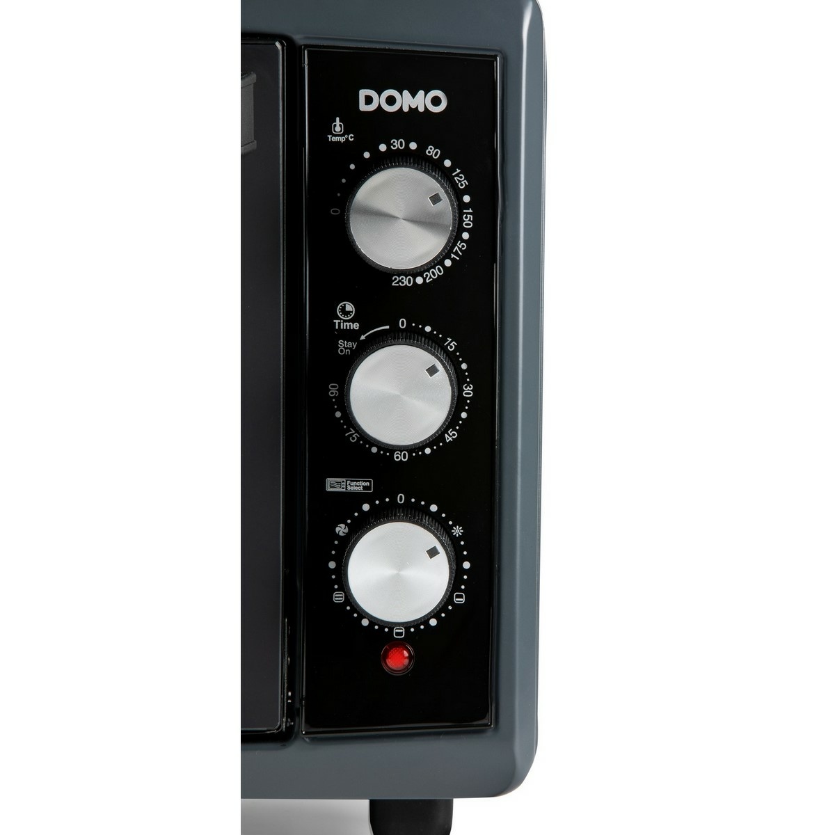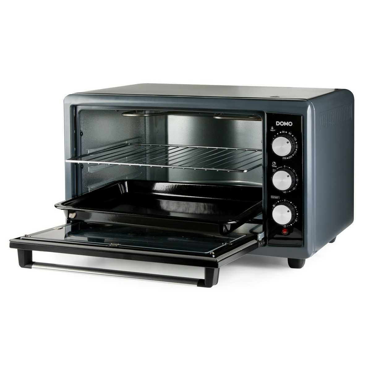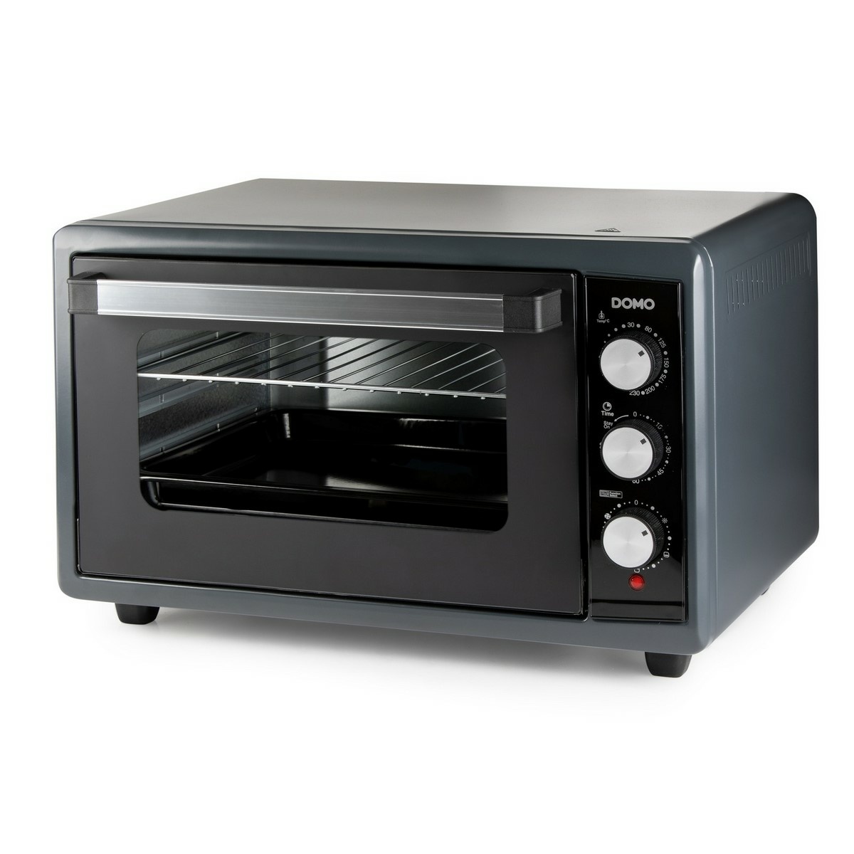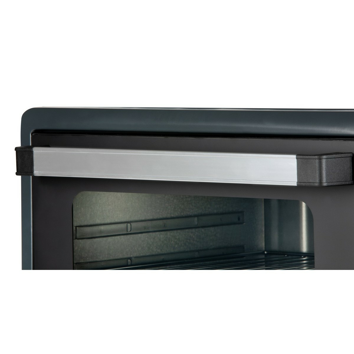 DOMO DO808GO je multifunkční volně stojící elektrická trouba s velkým objemem 50 l, ideální pro pečení, grilování i zapékání. Nabízí čtyři funkce ohřevu a široký rozsah teplot 30–230 °C, takže snadno připravíte vše od pizzy až po pečené maso. Zaoblená zadní stěna poskytuje více prostoru a umožňuje pečení velkých kulatých pokrmů až do průměru 40 cm.Rovnoměrné propečení zajišťuje konvekce (horký vzduch), zatímco jednoduché mechanické ovládání a 90minutový časovač usnadňují každodenní použití. Díky vnitřnímu osvětlení a dvojitému sklu průzoru máte neustálý přehled o tom, co se v troubě děje, aniž byste museli otevírat dvířka. Tři polohy pro plech nebo rošt dodávají flexibilitu při vaření.Trouba se rychle nahřívá – maximální teploty dosáhne už za 5 minut. Chladný dotykový povrch, nerezová rukojeť a kvalitní topná tělesa zajišťují bezpečný a spolehlivý provoz. Protiskluzové nožičky drží troubu pevně na místě a snadno čistitelný vnitřní povrch výrazně zjednodušuje údržbu.Technické parametry příkon: 2000 W režimy ohřevu: spodní / horní / spodní + horní / konvekce barva: antracit tři úrovně pro plech / rošt rozměry přístroje: 58,3 × 49,7 × 36,8 cm hmotnost přístroje: 11,2 kg délka kabelu: 130 cm rozměry plechu (vnější): 42,5 × 34,6 × 3,8 cm rozměry plechu (vnitřní): 37,5 × 29 × 3,5 cm rozměry roštu: 42,5 × 31,8 cmPříslušenství grilovací rošt plech na pečení