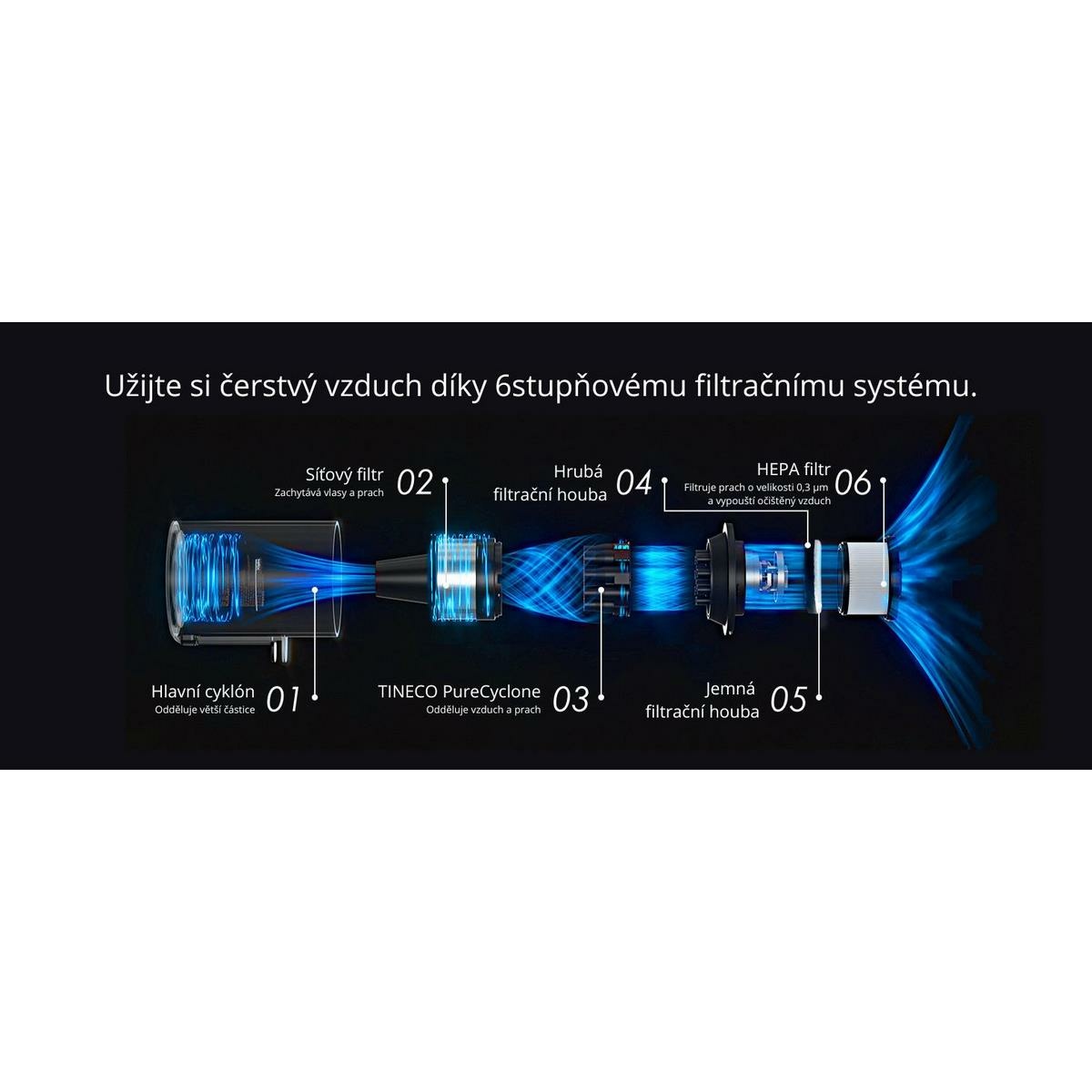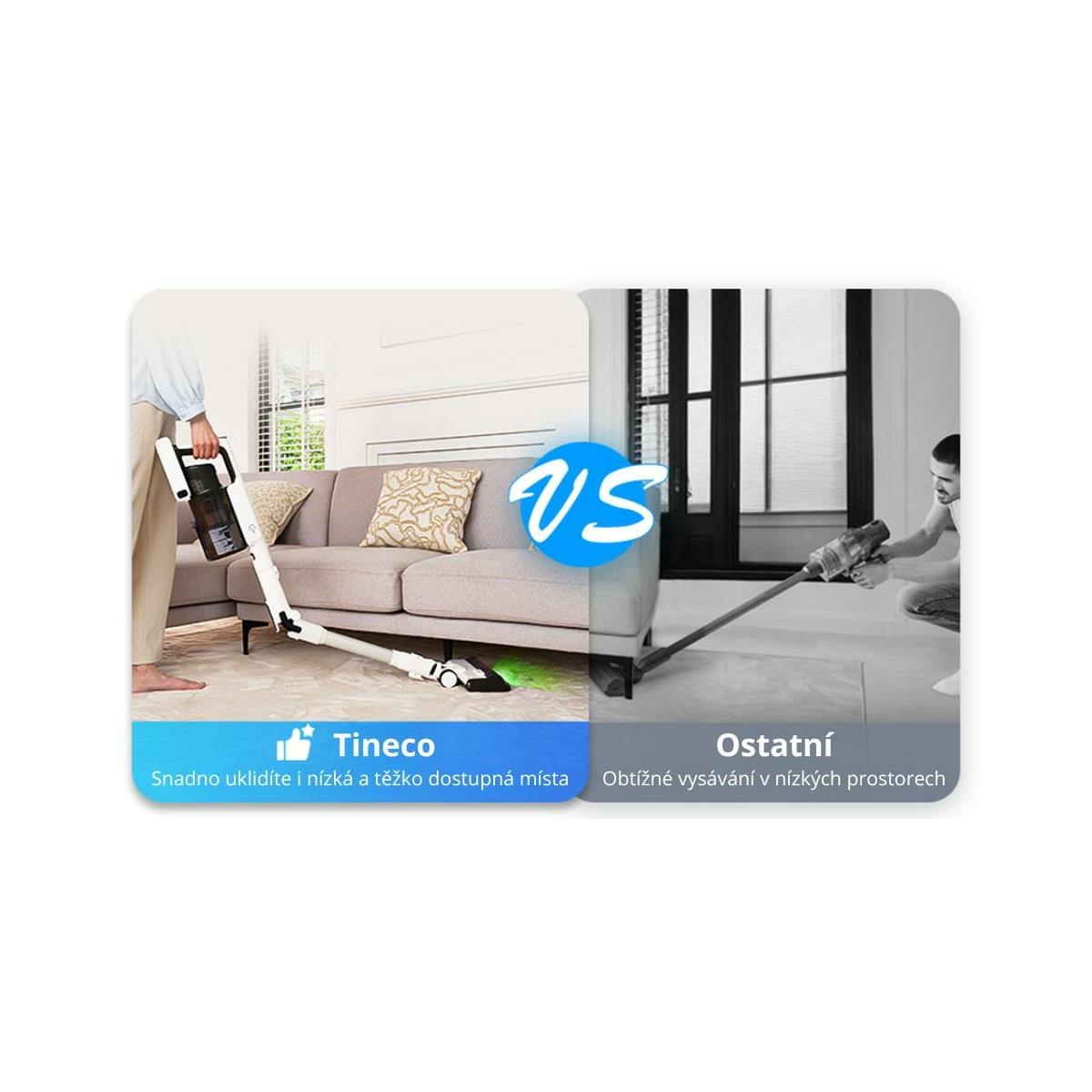 Tineco Pure ONE A50S je prémiový bezdrátový tyčový vysavač navržený pro maximální pohodlí, účinnost a hygienu při každodenním úklidu. Kombinuje vysoký sací výkon, nejmodernější senzory, dlouhou výdrž baterie až 70 minut a praktické příslušenství, díky čemuž se stává skvělým řešením pro celou domácnost – včetně domácností se zvířaty. S hmotností navrženou pro snadné manévrování a ergonomickou konstrukcí zvládne A50S vysávání pod nábytkem, ve výškách i v úzkých prostorech bez větší námahy.Srdcem vysavače je inteligentní senzor iLoop, který průběžně monitoruje míru znečištění a automaticky přizpůsobuje sací výkon tak, aby byl úklid co nejefektivnější a zároveň energeticky úsporný. Funkce EdgeSense zvyšuje sací výkon při přiblížení ke stěnám, zatímco LightSense s širokoúhlým LED světlometem odhalí i jemný prach v tmavých rozích. Díky technologii Tineco Dura-Cyclone a šestistupňové filtraci si vysavač udrží konzistentní sací výkon a zároveň zachytí až 99,99 % mikroskopických částic – pro čistší vzduch i prostředí.Tineco A50S využívá výkonný motor o jmenovitém výkonu 500 W a dosahuje sacího výkonu až 185 W. Kartáč ZeroTangle s dvojitým hřebenovým systémem zabraňuje zamotávání vlasů a chlupů, což ocení především majitelé domácích mazlíčků. Díky větší nádobě na prach o objemu 1 litr ji během úklidu nemusíte často vyprazdňovat a po skončení práce ji jednoduše vysypete hygienicky bez kontaktu s nečistotami. Součástí výbavy je skládací trubice, mini kartáč pro čalounění, štěrbinový nástavec i držák na stěnu – takže budete připraveni na jakýkoli typ úklidu.Parametry a specifikace Jmenovitý výkon motoru: 500 W Sací výkon: až 185 W Výdrž: až 70 minut Kapacita nádoby na prach: 1 l Filtrační systém: 6stupňový HEPA Technologie: iLoop, Dura-Cyclone, ZeroTangle LED displej: ano Světlo: širokoúhlé LED světlo (120°) Funkce automatického přizpůsobení výkonu: ano Hmotnost: cca 3 kg Barva: šedá s modrými prvkyObsah balení 3D Sense Power kartáč (hlavní hlavice s osvětlením) Skládací trubice Mini power kartáč (pro čalounění a matrace) Kartáček na štěrbiny Držák na stěnu Deodorizér (neutralizuje pachy během vysávání)