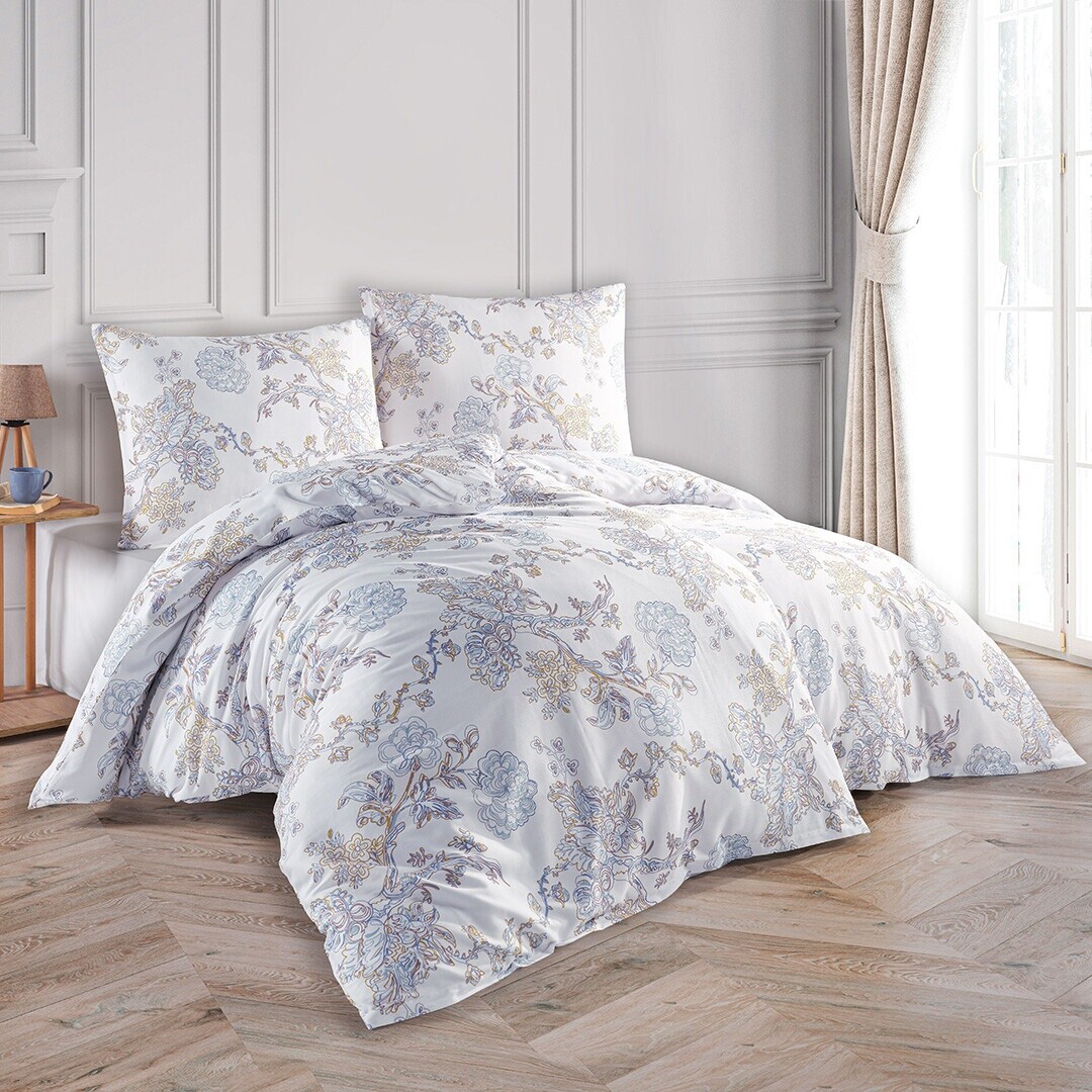 Vneste do své ložnice nádech luxusu s povlečením Elegance. Jemný květinový vzor v tónech modré a béžové na bílém podkladu působí decentně a nadčasově, takže se hodí jak do moderní, tak do klasické ložnice.Saténové povlečení je vyrobeno z kvalitní bavlny, která je hebká, prodyšná a příjemná na dotek. Jemný lesk tkaniny dodává povlečení elegantní vzhled a zajistí pohodlný spánek po celý rok. Praktické zapínání na zip usnadňuje povlékání a šetří čas. Certifikace OEKO-TEX® Standard 100 potvrzuje, že povlečení je zdravotně nezávadné a bezpečné i pro citlivou pokožku.Souprava obsahuje: 1 x povlak na polštář 80 x 80 cm 1 x povlak na přikrývku 135 x 200 cm