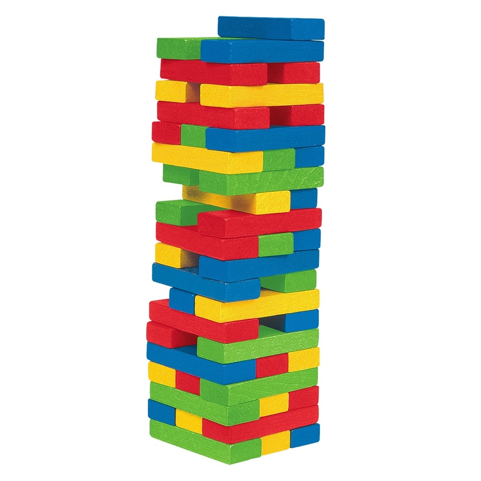 Dřevěná věž Tower Tony ve veselých barvách, zábavná hra pro celou rodinu. Ve hře se skládají dílky na sebe. Pak podle barvy, která padne na kostce, vytahujete dílky tak, aby se věž nezřítila. Hra pro malé i velké, která naučí logickému myšlení, trpělivosti. Po složení měří věž 27 cm a je 10 cm široká. Vhodné pro děti od 4 let. V balení naleznete 54 dílků.