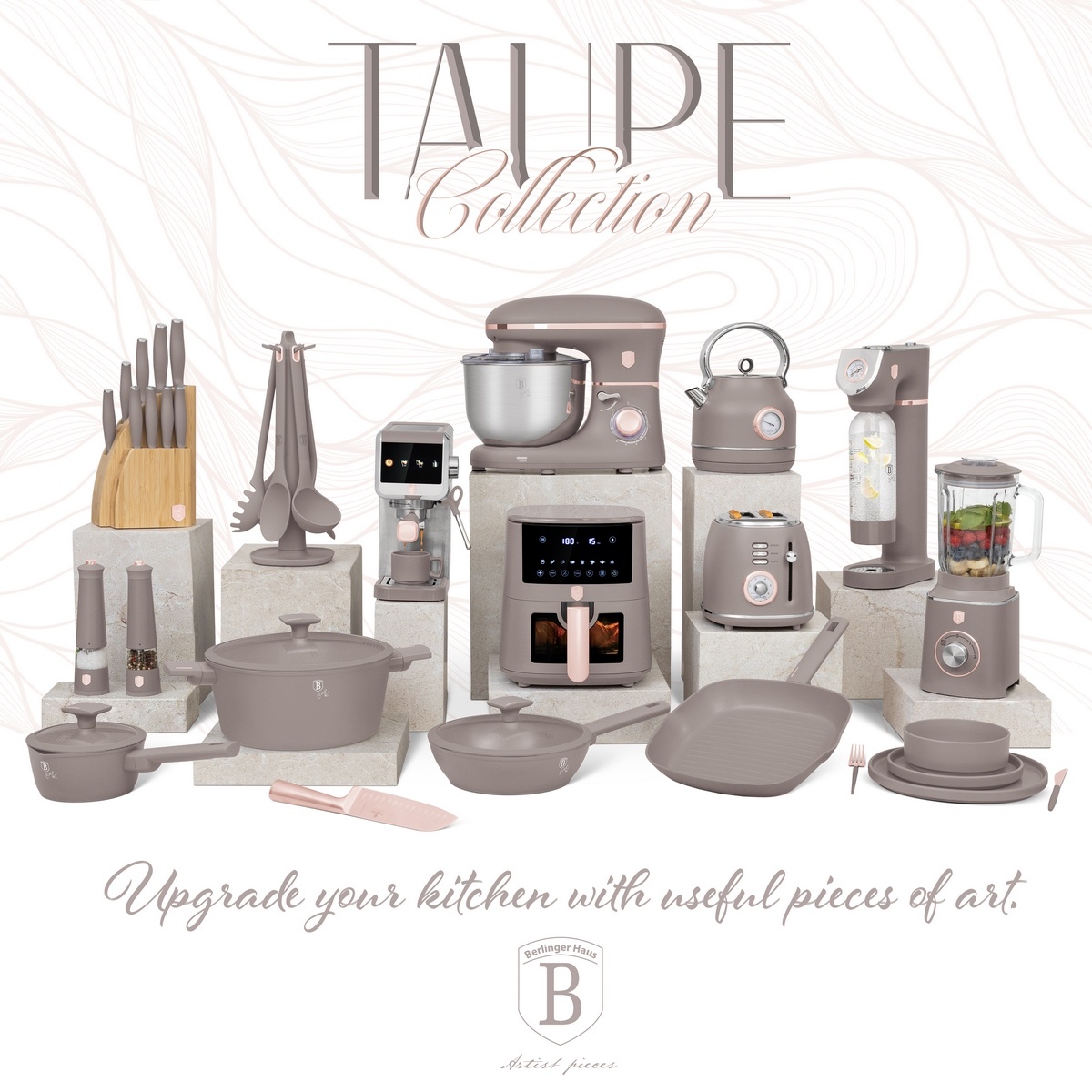 3dílná sada pánví Taupe Nordic od německé značky BerlingerHaus vyniká elegantním designem, který kombinuje matnou šedohnědou barvu s jemnými detaily v dekoru světlého dřeva. Díky tomu působí velmi moderně a přitom harmonicky, takže se skvěle hodí do každé kuchyně. Povrch je opatřený speciálním titanovým nepřilnavým povlakem TitanPro, který zaručuje snadnou přípravu pokrmů bez připálení a s minimálním množstvím tuku. Pánve jsou vyrobené z kvalitního kovaného hliníku, který se rychle zahřívá a rovnoměrně rozvádí teplo. Pohodlné ergonomické rukojeti jsou příjemné na dotek, zůstávají chladné a mají moderní vzhled díky stříbrné vložce a povrchu v imitaci dřeva. Díky indukčnímu turbo dnu jsou pánve kompatibilní se všemi typy varných desek. Povrch neobsahuje PFAS, olovo ani kadmium, takže je vaření nejen pohodlné, ale i šetrné k vašemu zdraví. Snadno se čistí a jsou ideální volbou pro každodenní použití, ať už připravujete rychlý oběd, nebo grilujete šťavnatý steak. Hlavní výhody produktu elegantní matná barva se světlými dřevěnými detaily titanový nepřilnavý povrch TitanPro pro zdravé a snadné vaření rychlý a rovnoměrný ohřev díky kovanému hliníku vhodné na všechny typy sporáků včetně indukce ergonomické rukojeti Soft Touch odolný povrch bez PFAS, olova a kadmia snadná údržba a dlouhá životnost Obsah balení 1× pánev 20 × 4,5 cm, objem 1,0 l 1× pánev 24 × 4,8 cm, objem 1,7 l 1× grilovací pánev 28 × 4,1 cm, objem 2,1 l