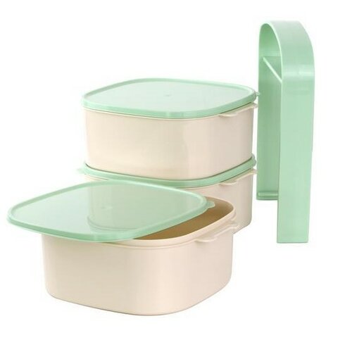 Plastový jídlonosič je užitečným pomocníkem pro přenášení pokrmů. Využijete ho zejména, když si chodíte pro obědy. Plastové misky jsou vhodné pro uložení celého menu. Víčka na každé misce umožňují pohodlné uchování jídla v chladničce bez obav z osychání. Plastový stojan umožňuje skládání nádob na sebe a snadný transport a úsporu místa.Nabízíme v několika barevných provedeních víčka a madla, bez možnosti výběru (bílá, zelená, oranžová, bordó).Specifikace jídlonosiče: objem nádoby - 3 x 1,2 l rozměry 1 misky - 14 x 14 cm výška misky bez víčka - 6 cm, výška misky s víčkem - 6,5 cm výška jídlonosiče bez ucha - 19,5 cm, výška jídlonosiče s uchem - 24 cm madlo je kontruováno pro pevnou fixaci všech misek i při náročnější manipulaci slouží k přenášení potravin s následným skladováním po dobu 24 hodin lze jej mýt v myčce na nádobí (bez víčka)