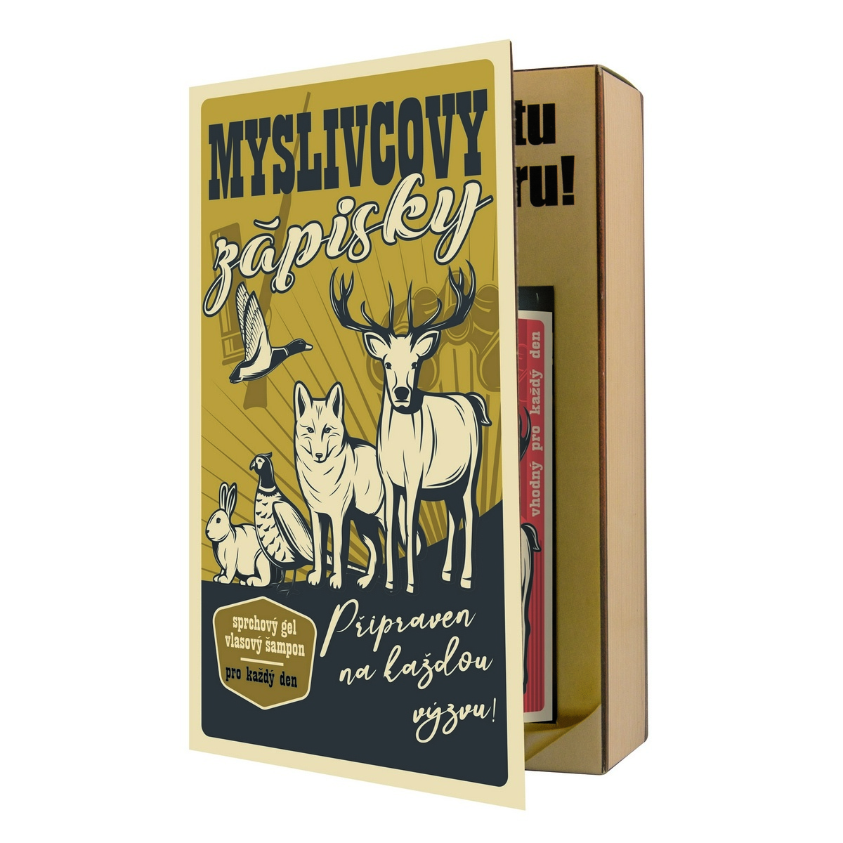 Dárkové balení kosmetiky pro myslivce a milovníky přírody je skvělý dárek, který obsahuje sprchový gel 250 ml a vlasový šampon 250 ml s olivovým olejem. Tento kosmetický balíček je zabalen v netradičním provedení jako kniha pro myslivce. Po odklopení přední strany krabičky si můžete přečíst několik mysliveckých vtipů, což dělá tento dárek nejen praktickým, ale i zábavným. Ideální pro každého, kdo má rád přírodu a myslivost.Krémový sprchový gel s olivovým olejem 250 ml – krémový sprchový gel s olejem z plodů olivovníku evropského (Olea Europaea). Obsahuje kvalitní ošetřující kosmetický olivový olej se zjemňujícími a lubrikačními vlastnostmi, který podporuje mycí schopnosti přípravku a napomáhá ochraně pokožky před vysušováním a zároveň ji udržuje v hebkém a jemném stavu. Ingredients: Aqua, Sodium Laureth Sulfate, Cocamidopropyl Betaine, Sodium Chloride, Cocamide DEA, Lauryl Glucoside, Olive Oil Glycereth-8 Esters, Styrene/Acrylates Copolymer, PEG-7 Glyceryl Cocoate, Polyquaternium-7, Glycerin, Parfum, Citric Acid, Methylchloroisothiazolinone, Methylisothiazolinone, Coumarin, CI 42090, CI 19140, CI 17200.Vlasový šampon s podmanivou vůní 250 ml – velice jemný přípravek, vhodný k mytí celého těla i vlasů. Díky svému složení pomáhá chránit pokožku před nadměrným vysušováním při mytí, které je šetrné a přitom účinné. Má podmanivou a moderní vůni, která osvěžuje a zanechává příjemný pocit. Je vhodný pro použití zejména při sportovních aktivitách. Ingredients: Aqua, Sodium Laureth Sulfate, Cocamidopropyl Betaine, Sodium Chloride, Cocamide DEA, Lauryl Glucoside, Polyquaternium-7, PEG-7 Glyceryl Cocoate, Parfum, Citric Acid, Methylchloroisothiazolinone, Methylisothiazolinone, Hexyl Cinnamal, Limonene, CI 42090, CI 19140, CI 17200.