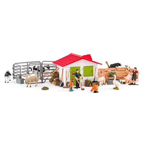 Faunica Sada domácích zvířat s farmou je krásně zpracovaný hrací set, který dětem přináší autentickou atmosféru venkovského života. Tato rozmanitá sada nabízí realistické figurky zvířat i farmářů, kteří se o ně starají, a poskytuje nekonečné možnosti pro tvořivou hru. Všechny prvky jsou detailně propracované, takže hra působí jako skutečný život na farmě.Součástí je farmářský domek s červenou střechou a zelenými dveřmi, ohrada a řada hospodářských zvířat – ovce, kozy, slepice, kohout, husa, kráva, prase a další. Děti zde najdou také farmáře a farmářku, nářadí, krmivo a další příslušenství, které doplňuje realistický dojem. Každá figurka je vyrobena z pevného a bezpečného plastu, který odolá i náročnějším dětským hrám.Sada pomáhá dětem rozvíjet představivost, motoriku i vztah ke zvířatům. Je ideální pro hru doma i venku a snadno se kombinuje s dalšími sadami značky Faunica.Parametry a specifikace počet dílů: 25 materiál: plast rozměry balení: 44,5 × 28,5 × 5 cm doporučený věk: od 3 letObsah balení 1× farma s domečkem 2× figurka farmářů 1× ovce 2× kozy 1× kráva 1× prase 1× husa 1× slepice 1× kohout 1× kbelík 1× ohrada 1× vidle, lopata, koště a další doplňky
