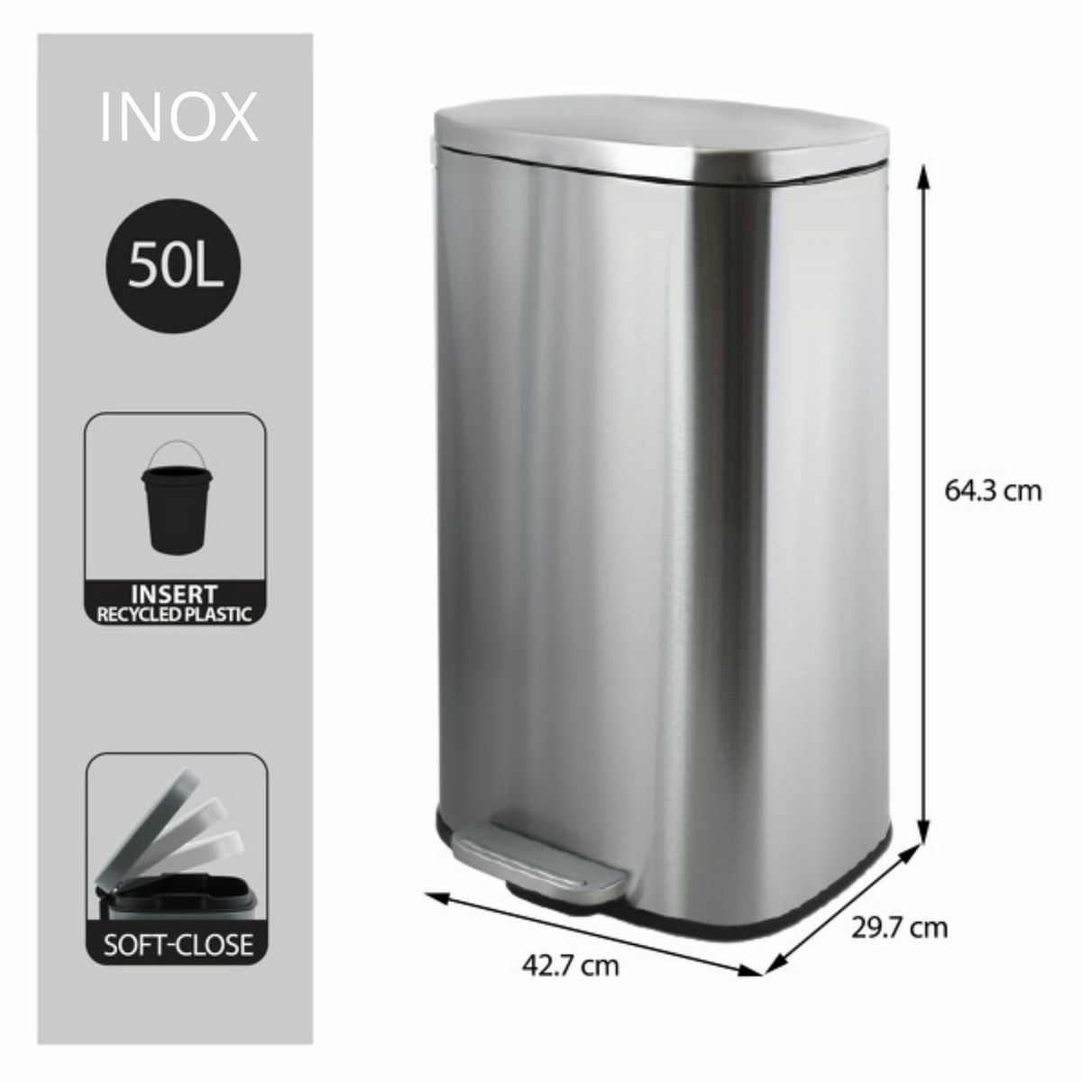 Spirella Pedálový odpadkový koš soft-close Akira 50 l, kartáčovaný nerez, 50 l