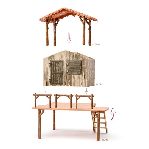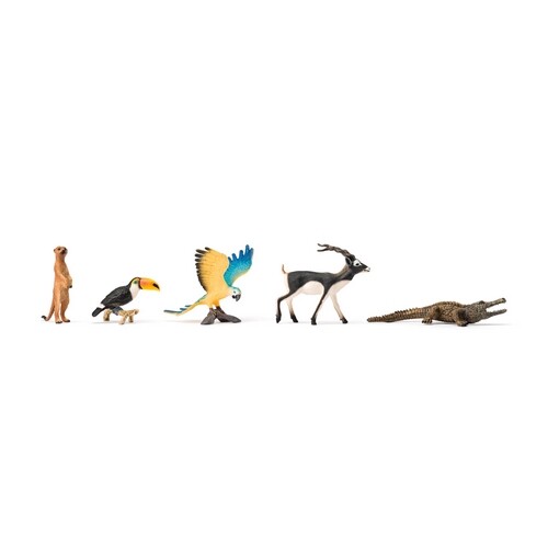 Faunica Sada divokých zvířat se safari domečkem přináší dětem vzrušující dobrodružství do srdce africké divočiny. Tato bohatě vybavená sada nabízí množství realisticky zpracovaných figurek, které děti zavedou mezi lvy, zebry, žirafy, slony i krokodýly. Každé zvíře je detailně vyrobeno a vybarveno, aby co nejvíce odpovídalo skutečnosti, a podněcuje tak dětskou představivost i zájem o přírodu.Dominantou sady je domeček na kůlech se střechou z rákosu, který slouží jako pozorovatelna pro správce safari. Nechybí ani vozík s příslušenstvím, krmítka, vědra, ohrady a figurka ošetřovatele, který se o zvířata stará. Všechny prvky lze rozmístit podle fantazie, takže děti si mohou vytvořit vlastní svět plný dobrodružství a objevování.Parametry a specifikace materiál: plast rozměry balení: 44,5 × 28,5 × 5 cm doporučený věk: od 3 letObsah balení 1× safari domeček 1× ošetřovatel 1× vozík s příslušenstvím 1× lev 1× žirafa 1× zebra 1× slon a mládě 1× krokodýl 1× pštros 1× gazela 1× tukan 1× papoušek 1× surikata 1× ohrada a další doplňky