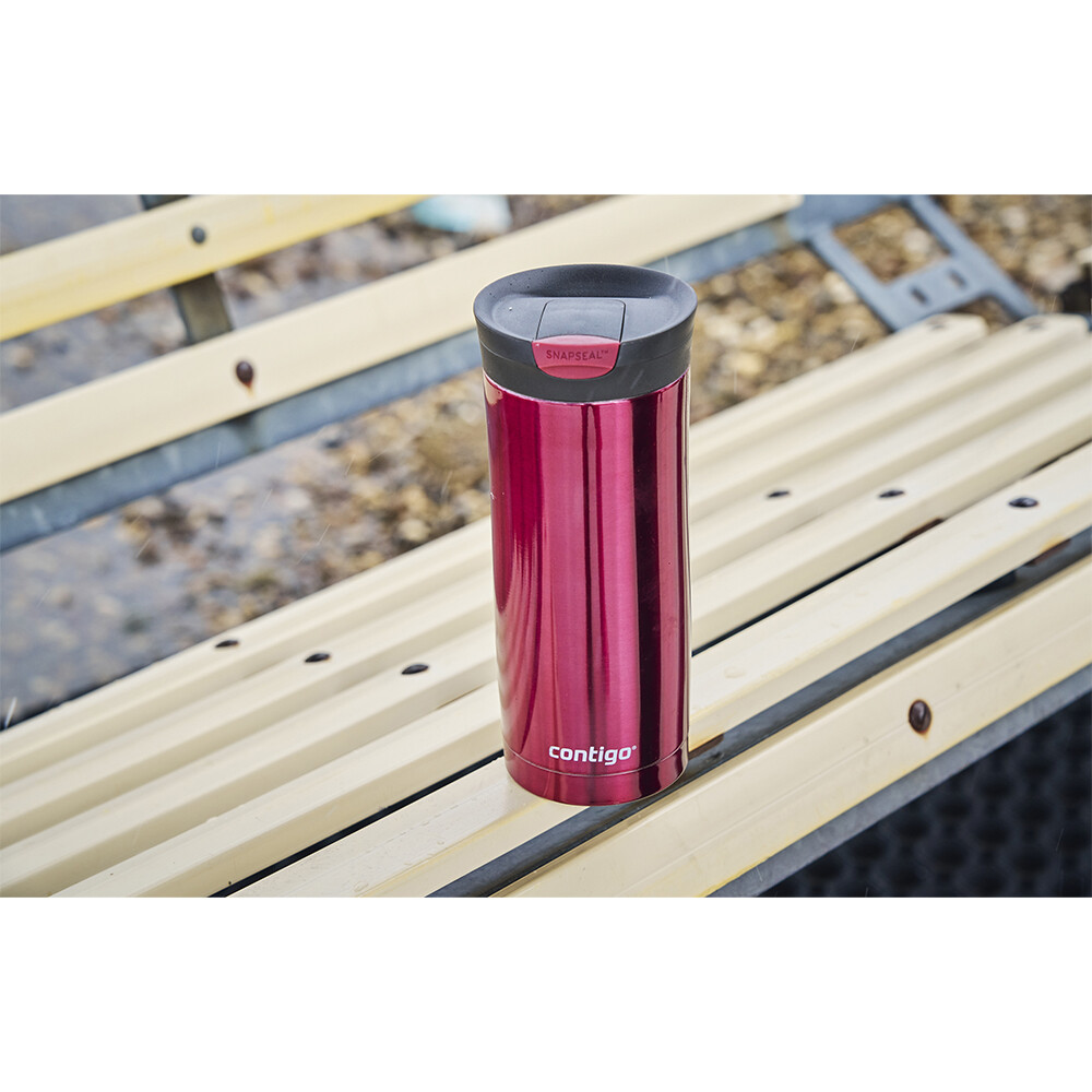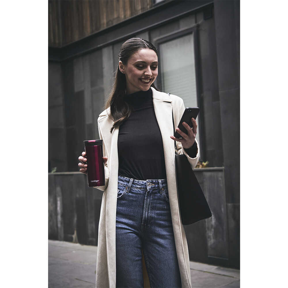Termo hrnek Huron Vivacious od značky Contigo je elegantní a praktický společník pro každodenní cesty i pracovní nasazení. Díky chytrému víčku SNAPSEAL si můžete vychutnat nápoj jednou rukou – při pití víčko jednoduše odklopíte a po použití zaklapnete zpět. Uzávěr se tím plně utěsní, což zajišťuje maximální bezpečnost při přenášení. Hrnek je ideální pro dojíždění, cestování i každodenní použití doma nebo v kanceláři.Díky dvouplášťové konstrukci z kvalitní nerezové oceli 18/8 s vakuovou izolací THERMALOCK vydrží váš čaj nebo káva horké až 7 hodin a osvěžující nápoje studené až 12 hodin. Robustní provedení zaručuje dlouhou životnost a odolnost proti poškození, zatímco hladký povrch ve výrazné červenorůžové barvě působí moderně a stylově. Objem 470 ml představuje ideální velikost pro každodenní dávku tekutin na cestách.Údržba je snadná – víčko lze mýt v myčce nádobí v horním koši, zatímco tělo hrnku je vhodné mýt ručně, aby si zachovalo své izolační vlastnosti. Hrnek je 100% vodotěsný a zároveň se vejde do většiny držáků nápojů v autě, takže se skvěle hodí i na cestování.Hlavní výhody produktu víčko SNAPSEAL pro snadné pití jednou rukou 100% vodotěsný uzávěr chrání před vytečením vakuová izolace THERMALOCK: až 7 hodin horké a 12 hodin studené nápoje dvouplášťová konstrukce z nerezové oceli 18/8 bez BPA víčko vhodné do myčky (horní koš), tělo mýt ručně ideální velikost 470 ml na cesty i do práce vejde se do většiny držáků nápojů v autěObsah balení 1× termo hrnek Huron SNAPSEAL 470 ml