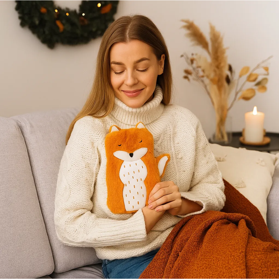Roztomilý termofor Altom v motivu lišky rychle zahřeje během chladných dnů a díky objemu 500 ml je ideální pro děti i dospělé. Udrží teplo až 2 hodiny, což pomáhá uvolnit svaly a přinést pocit pohodlí doma i na cestách.Měkký plyšový obal v červeno-oranžové barvě je příjemný na dotek, chrání pokožku před horkým povrchem a lze jej snadno sejmout a vyprat ručně. Praktické poutko usnadňuje držení a manipulaci.