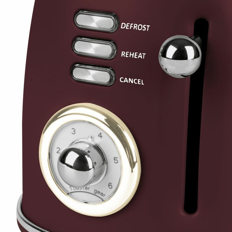 Elegantní topinkovač v matné bordeaux barvě dodá vaší kuchyni nejen stylový akcent, ale zároveň se stane nepostradatelným pomocníkem při přípravě chutných snídaní nebo rychlých svačin. Díky výkonu 850 W a extra širokým otvorům zvládne rychle a rovnoměrně opéct různé druhy pečiva – od tenkých toastových plátků až po silnější krajíce chleba, bagely nebo anglické muffiny.Topinkovač nabízí tři užitečné funkce: rozmrazování, ohřívání a okamžité zrušení procesu. Šest úrovní opékání umožňuje přizpůsobit intenzitu opečení přesně podle vaší chuti. Funkce vysokého zvedání zajišťuje bezpečné vyjmutí i menších kousků pečiva bez rizika popálení. Každodenní používání je tak nejen pohodlné, ale i bezpečné.Praktické detaily, jako je vyjímatelná miska na drobky nebo úložný prostor pro kabel, usnadňují údržbu a pomáhají udržet pracovní plochu čistou. Protiskluzové nožičky zajišťují stabilitu při používání. Robustní konstrukce z kovu a hliníku dodává spotřebiči dlouhou životnost a moderní vzhled, který se skvěle hodí do každé kuchyně.Parametry a specifikace Materiál: kov, hliník Výkon: 850 W Napětí: 220–240 V, 50/60 Hz Barva: matná bordeaux Funkce: rozmrazování, ohřívání, zrušení Počet úrovní opékání: 6 Šířka otvorů: 3,8 cm Funkce vysokého zvedání: ano Vyjímatelná miska na drobky: ano Protiskluzové nožičky: ano Úložný prostor pro kabel: ano