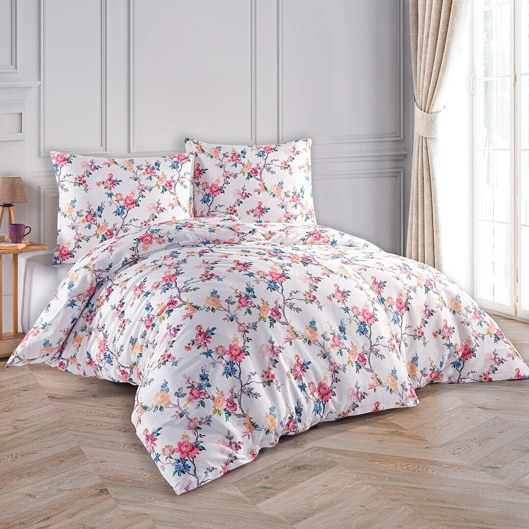 Dopřejte své ložnici jemnou eleganci s povlečením Bliz. Romantický květinový vzor v odstínech růžové, modré a žluté na bílém podkladu působí svěže, nadčasově a vnese do interiéru příjemnou atmosféru.Povlečení je vyrobeno z kvalitní bavlny v saténové úpravě, je hebké, prodyšné a příjemné na dotek. Jemný lesk dodává materiálu luxusní vzhled a zajistí komfortní spánek po celý rok. Praktické zapínání na zip usnadňuje a urychluje povlékání. Certifikace OEKO-TEX® Standard 100 garantuje zdravotní nezávadnost a šetrnost k pokožce, takže se povlečení hodí i pro ty nejcitlivější spáče.Souprava obsahuje: 2 x povlak na polštář 70 x 80 cm 1 x povlak na přikrývku 160 x 200 cm