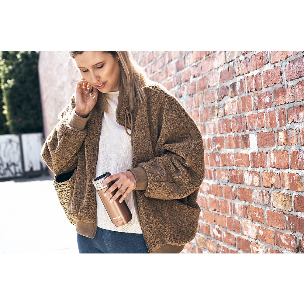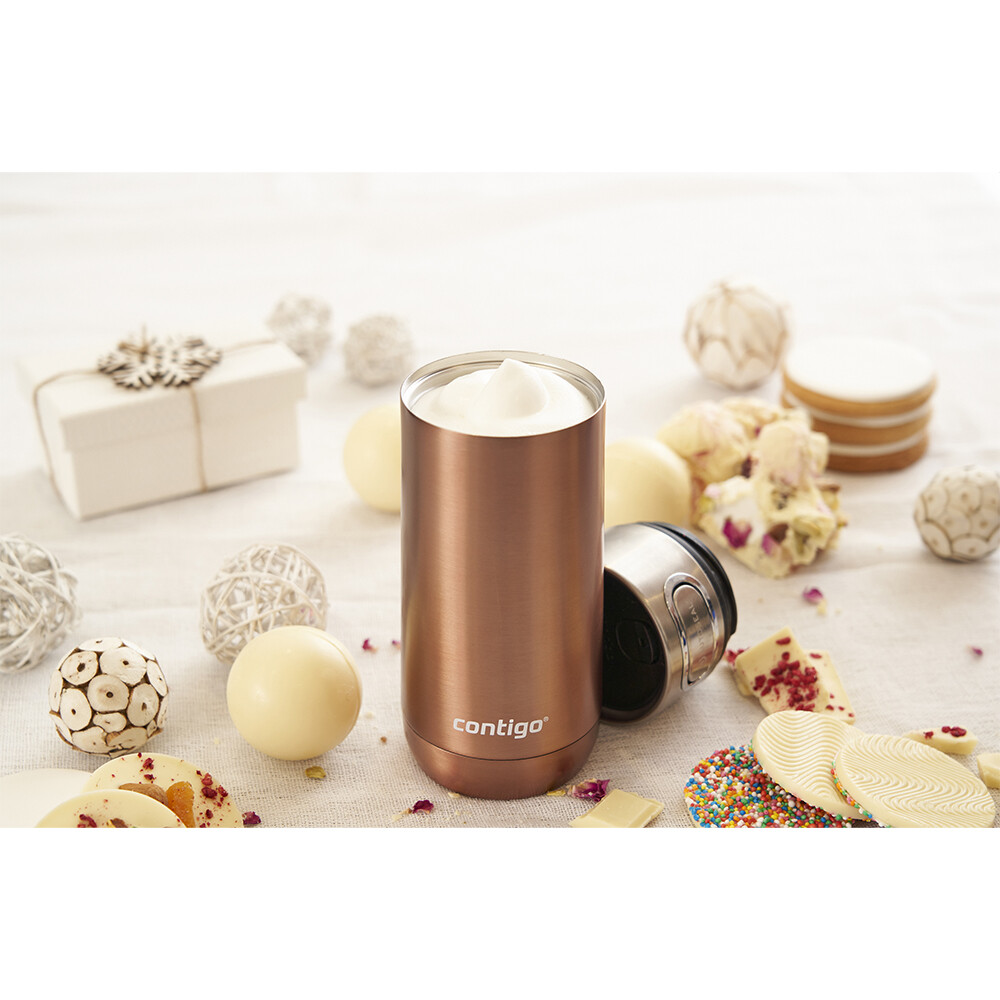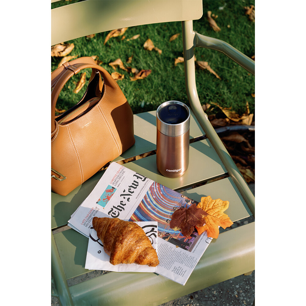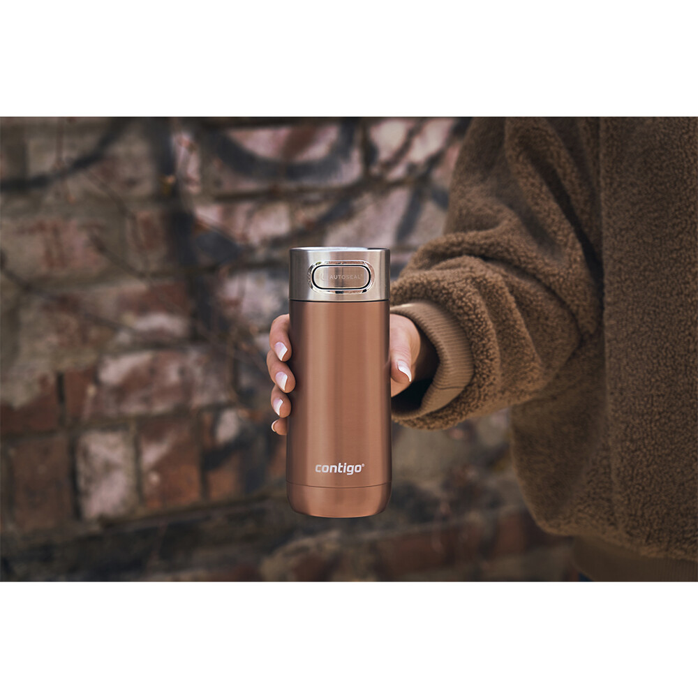 Termo hrnek Luxe Zinfandel od značky Contigo je elegantní společník pro všechny, kteří chtějí mít svůj oblíbený nápoj vždy po ruce. Moderní provedení v hnědé barvě s nerezovým detailem působí sofistikovaně a hodí se jak na cesty, tak i do kanceláře. Díky technologii AUTOSEAL se nemusíte obávat nechtěného rozlití – při pití stačí stisknout tlačítko a po jeho uvolnění se víčko automaticky utěsní. Hrnek tak umožňuje pohodlné ovládání jednou rukou a maximální bezpečnost při každodenním používání.Dvouplášťová konstrukce z nerezové oceli18/8 s vakuovou izolací THERMALOCK udrží váš čaj nebo kávu horké až 3 hodiny a osvěžující nápoje příjemně studené až 10 hodin. Díky kompaktním rozměrům a objemu 360 ml je hrnek ideální pro krátké cesty, do práce nebo na schůzky. Vyniká nejen svou funkčností, ale také snadnou údržbou – víčko i tělo lze mýt v myčce nádobí v horním koši. Pro ještě lepší hygienu je víčko navrženo tak, aby se jeho spodní část dala plně otevřít a vyčistit i v těžko dostupných místech.Hrnek Luxe je 100% vodotěsný a vybaven pojistkou tlačítka, která zamezuje nechtěnému otevření během cestování. Díky tomu je spolehlivým partnerem nejen do auta, ale i při chůzi nebo jízdě na kole. Minimalistický design a praktické funkce dělají z tohoto termohrnku ideální doplněk pro každodenní použití.Hlavní výhody produktu technologie AUTOSEAL pro 100% ochranu proti rozlití ovládání jednou rukou – stiskem tlačítka otevřete, uvolněním zavřete vakuová izolace THERMALOCK: až 3 hodiny horké a 10 hodin studené nápoje dvouplášťová konstrukce z nerezové oceli 18/8 bez BPA víčko i tělo vhodné do myčky nádobí (horní koš) snadno čistitelné víčko s plně otevíratelnou spodní částí kompaktní velikost vhodná do tašky i do auta pojistka tlačítka proti nechtěnému otevřeníObsah balení 1× termo hrnek Luxe AUTOSEAL 360 ml