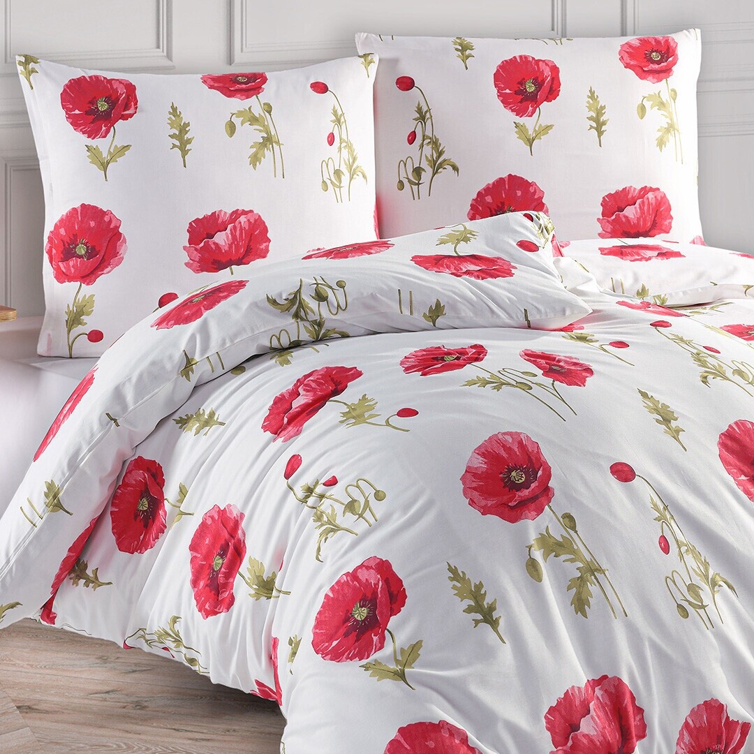 Vneste do své ložnice jemnost a romantickou eleganci. Povlečení Mona tvoří jemný bílý podklad s motivem červených květů, který působí útulně, svěže a dodá interiéru nádech harmonie.Je vyrobeno z kvalitní bavlny renforcé, která je hebká na dotek, prodyšná a příjemná pro celoroční použití. Díky praktickému zapínání na zip zvládnete povlékání rychle a snadno.Souprava obsahuje: 2 x povlak na polštář 70 x 80 cm 1 x povlak na přikrývku 160 x 200 cm