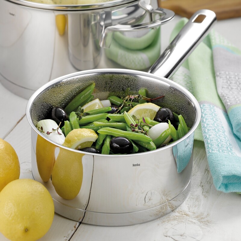 Kela Rendlík 1,3 l CAILIN. Luxusní hrnce a pánve německé značky KELA, řady Cailin se zárukou 5 let jsou vyrobeny z leštěné nerezové oceli 18/10, mají vícevrstvé termoakumulační dno, sílu stěny 0,8 mm, skleněné poklice a nerezové rukojeti. Rozměry: výška 8 cm.
